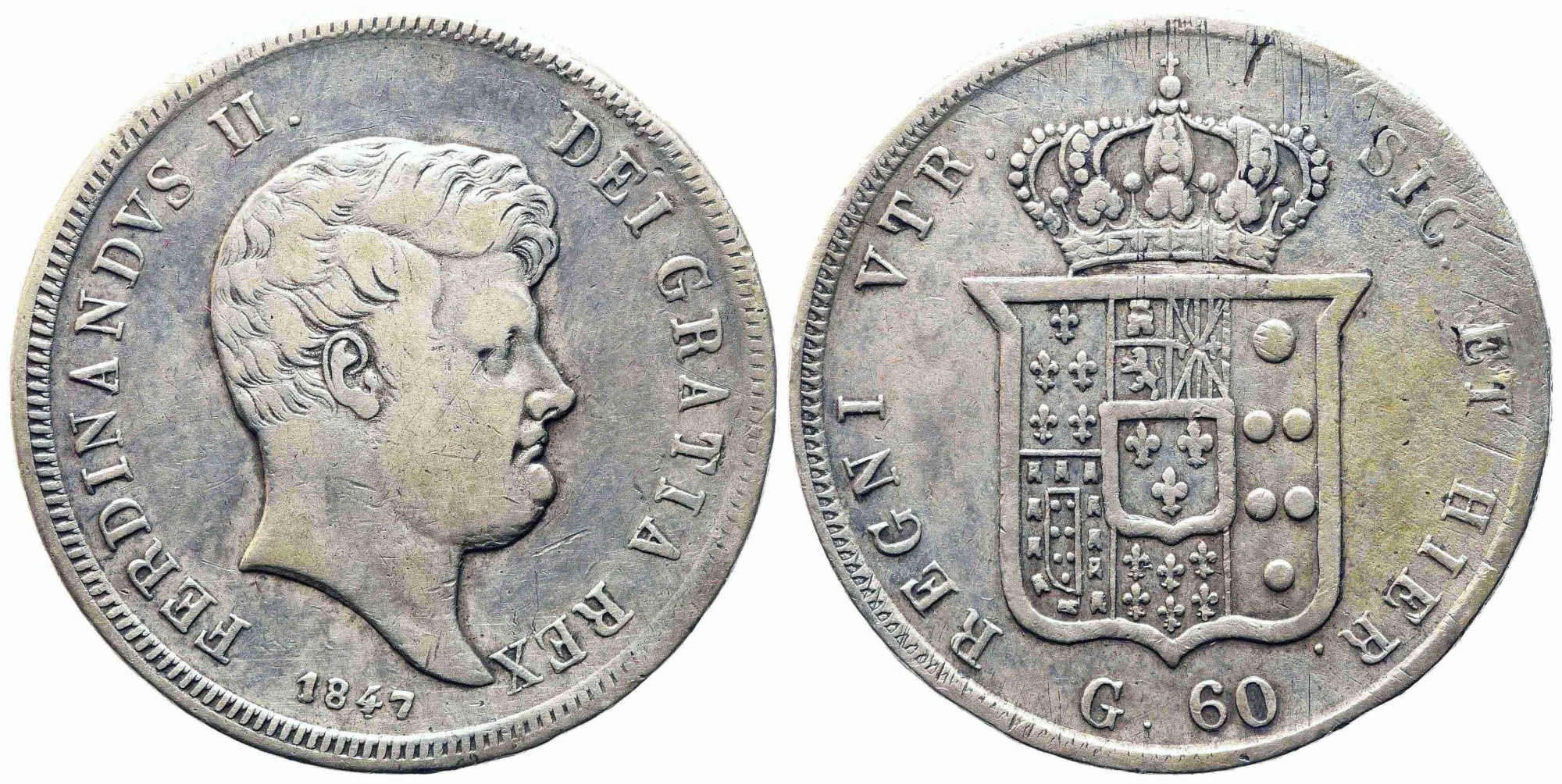 NAPOLI. Regno delle Due Sicilie. Ferdinando II di Borbone (1830-1859). Mezza piastra - 60 grana 1847. Ag. R. BB