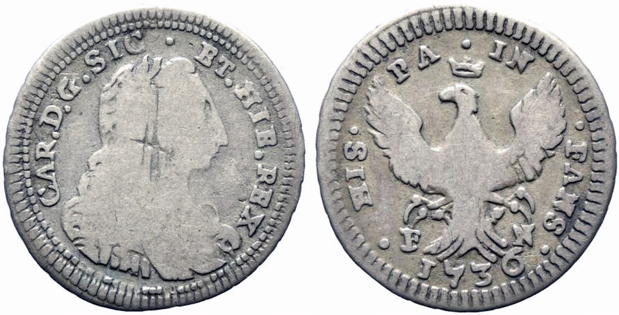 PALERMO. Regno di Sicilia. Carlo di Borbone (1734-1759). 2 tari 1736. Ag (24,3 mm – 4,01 g) Spahr 126. Gig. 56. MB