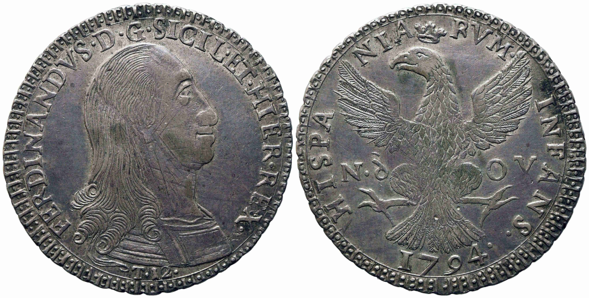 PALERMO. Regno di Sicilia. Ferdinando III di Borbone (1759-1816). 12 tari 1794. Ag. Gig. 14a. R. SPL+. Metallo lucente e patina di antica collezione. Di rara apparizione sul mercato in questa conservazione.