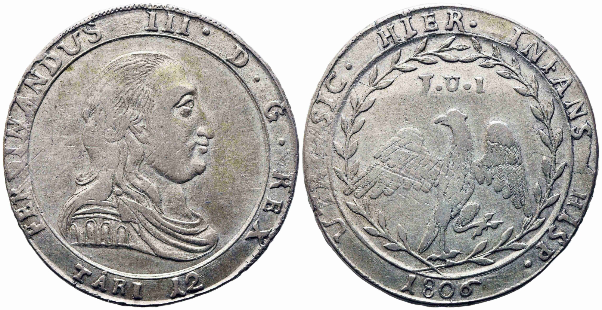 PALERMO. Regno di Sicilia. Ferdinando III di Borbone (1759-1816). 12 tari 1806. Ag. Gig. 27. RR. BB+