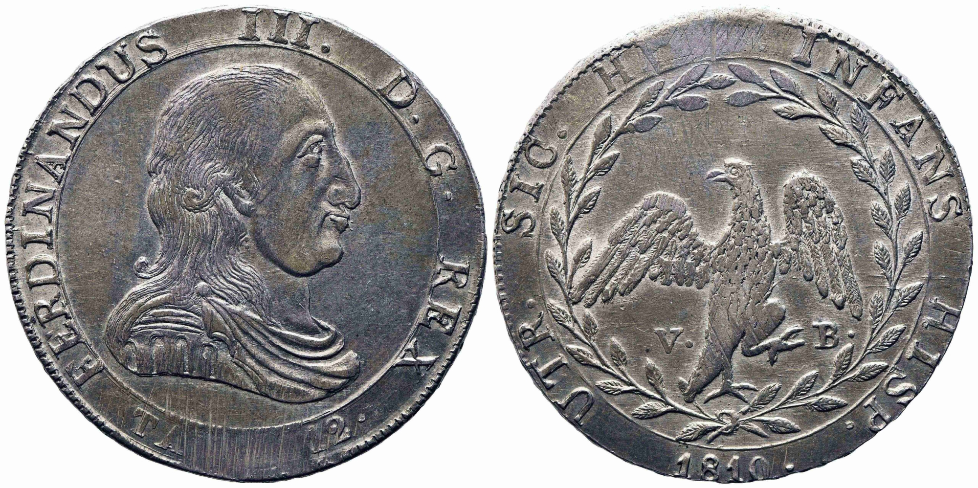 PALERMO. Regno di Sicilia. Ferdinando III di Borbone (1759-1816). 12 tari 1810. Ag. Gig. 29a. R. SPL+/qFDC. Patina di antica collezione, metallo lucente.