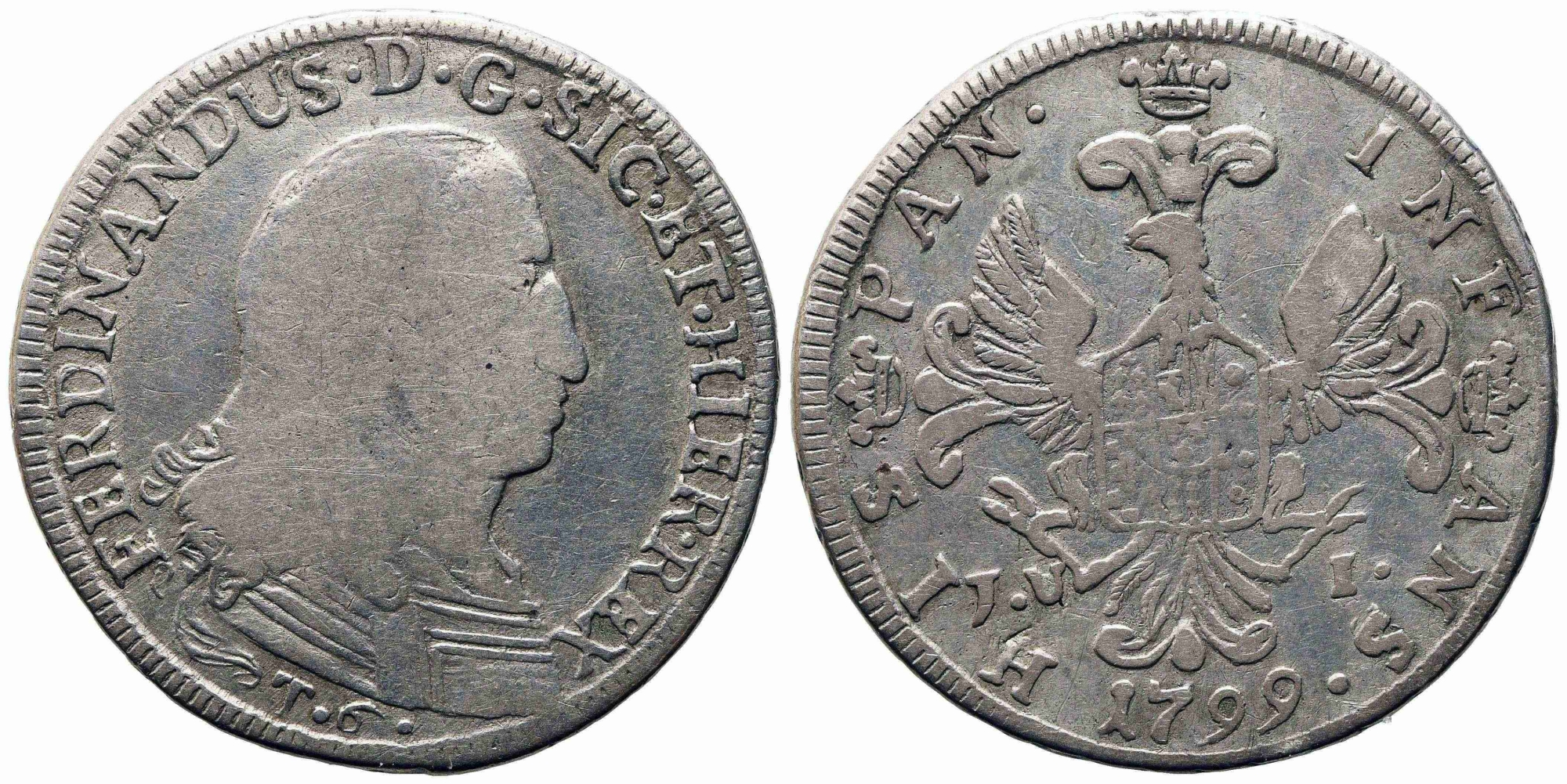 PALERMO. Regno di Sicilia. Ferdinando III di Borbone (1759-1816). 6 tari 1799. Ag. Gig. 41. R. MB
