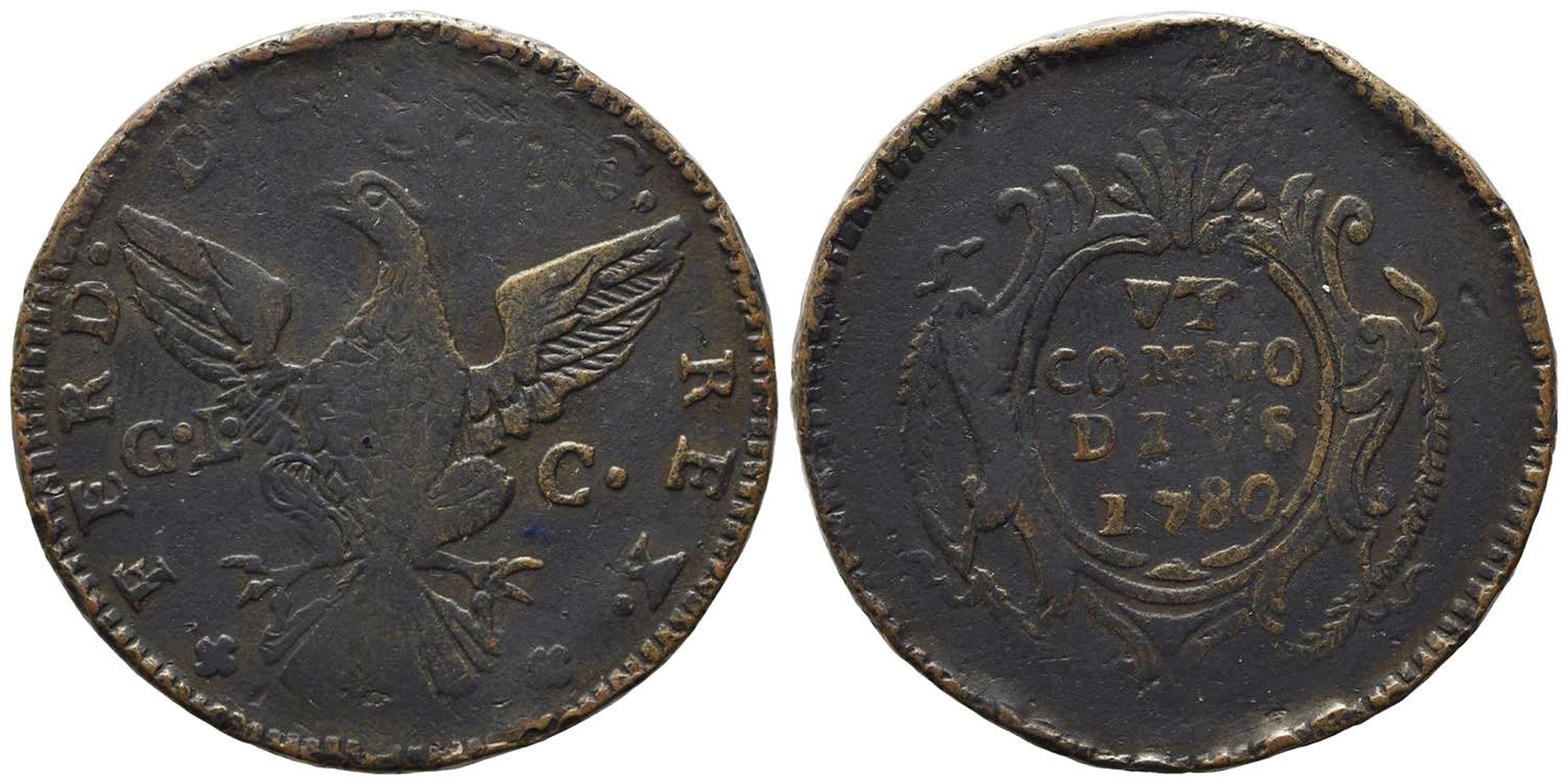 PALERMO. Regno di Sicilia. Ferdinando III di Borbone (1759-1816). 2 grani 1780. Cu. Gig. 95. NC. BB