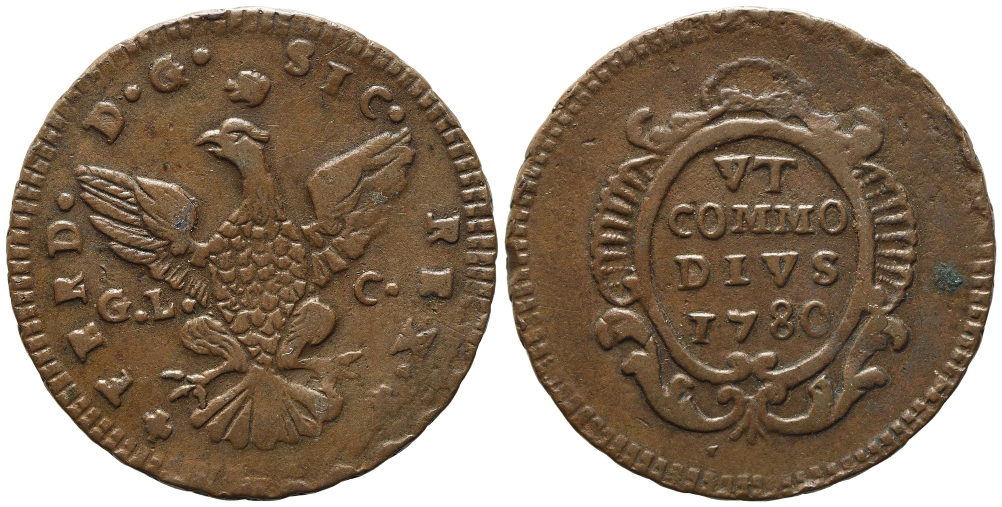 PALERMO. Regno di Sicilia. Ferdinando III di Borbone (1759-1816). 1 grano 1780. Cu. Gig. 115. NC. BB/SPL