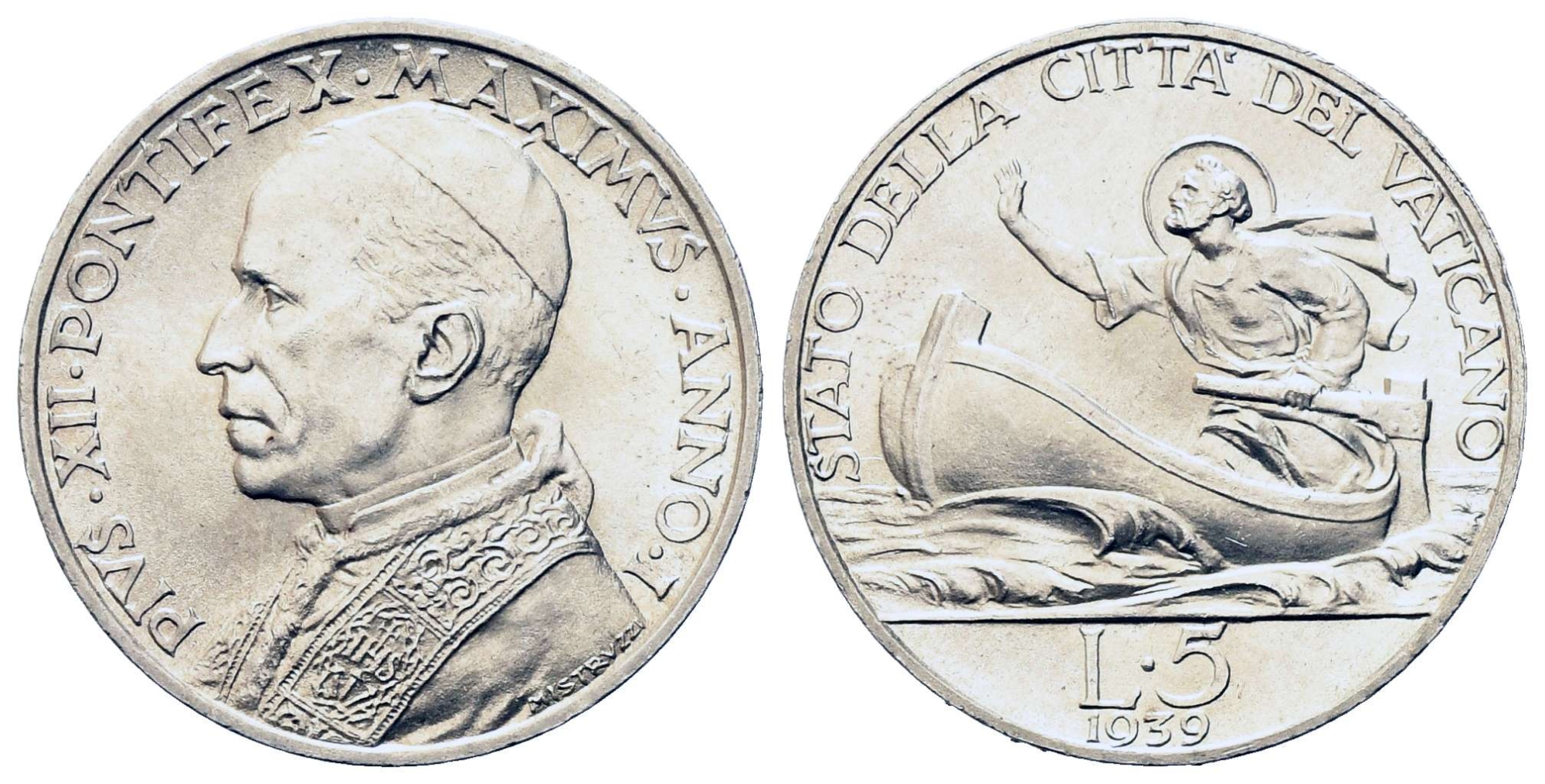 CITTA' DEL VATICANO. Pio XII (1939-1958). 5 lire 1939. Ag (5 g). Gig. 146. FDC