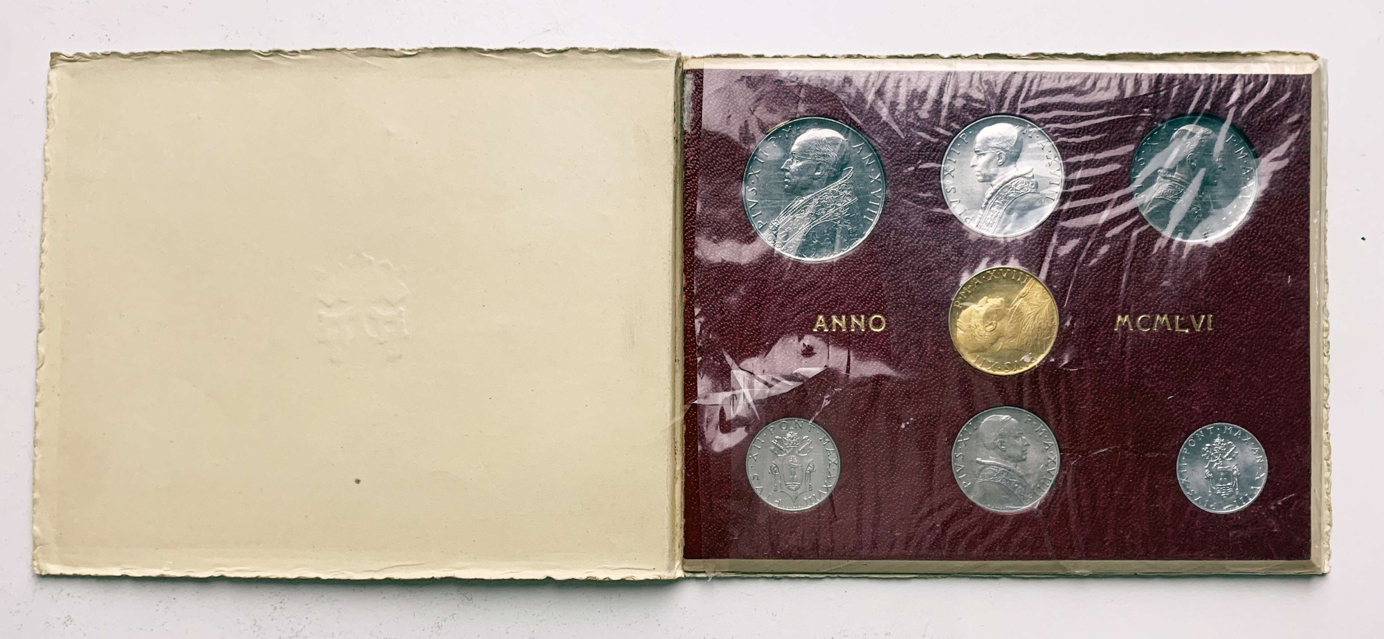 CITTA' DEL VATICANO. Pio XII (1939-1958). Divisionale 1956, anno XVIII con 100 lire Au. Rif. Gig. 251a. Coniazione di soli 1000 esemplari. FDC