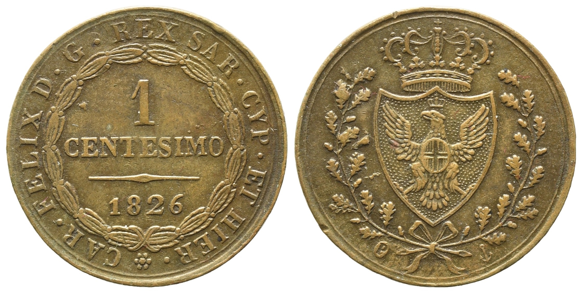 REGNO DI SARDEGNA. Carlo Felice (1821-1831). 1 centesimo 1826. Genova. Cu. R....