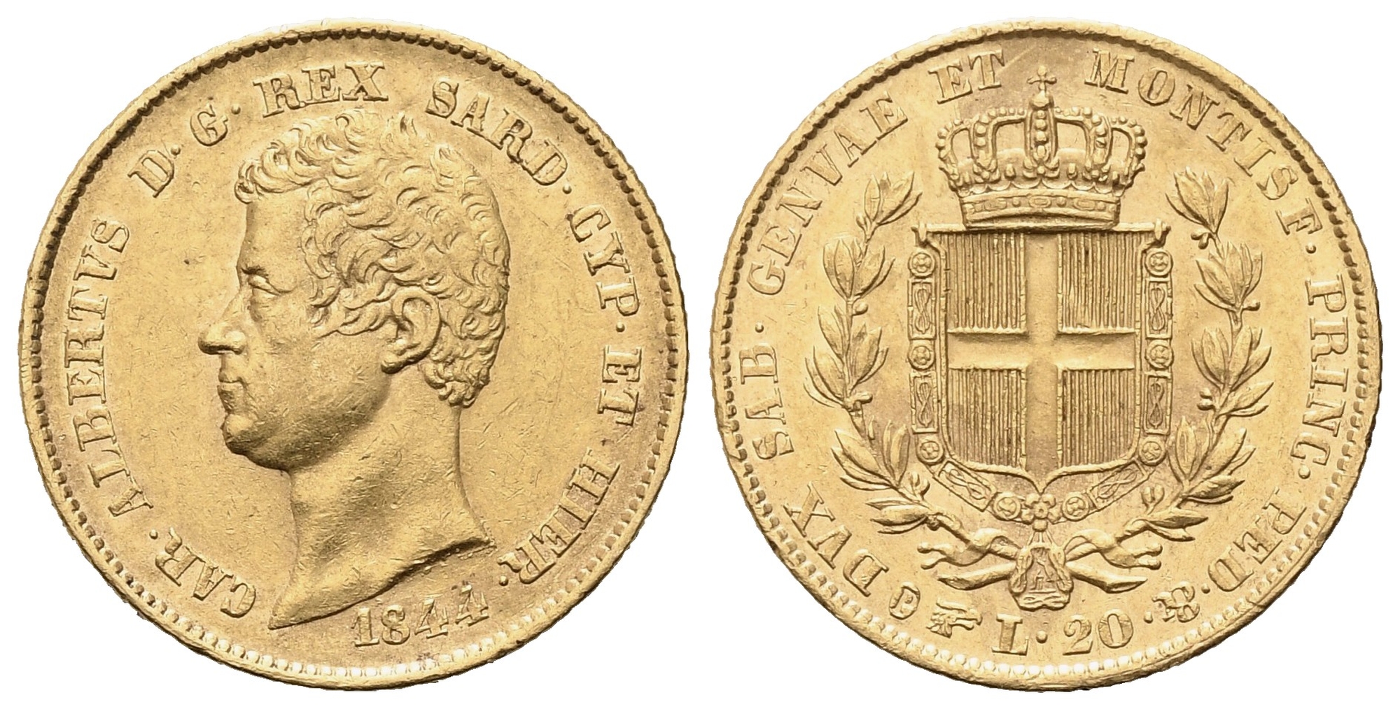 Lot 721 | REGNO DI SARDEGNA. Carlo Alberto (1831-1849). 20 lire 1844. Torino. Au (21 mm...