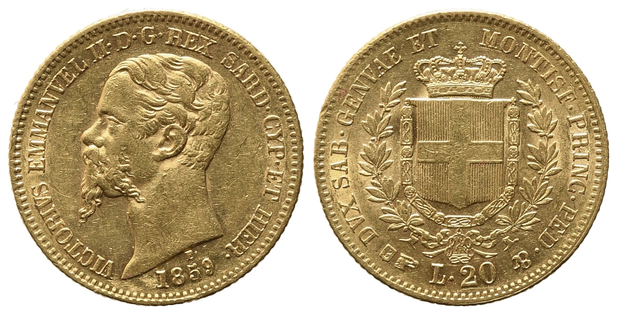 REGNO DI SARDEGNA. Vittorio Emanuele II (1849-1861). 20 lire 1859. Torino. Au...