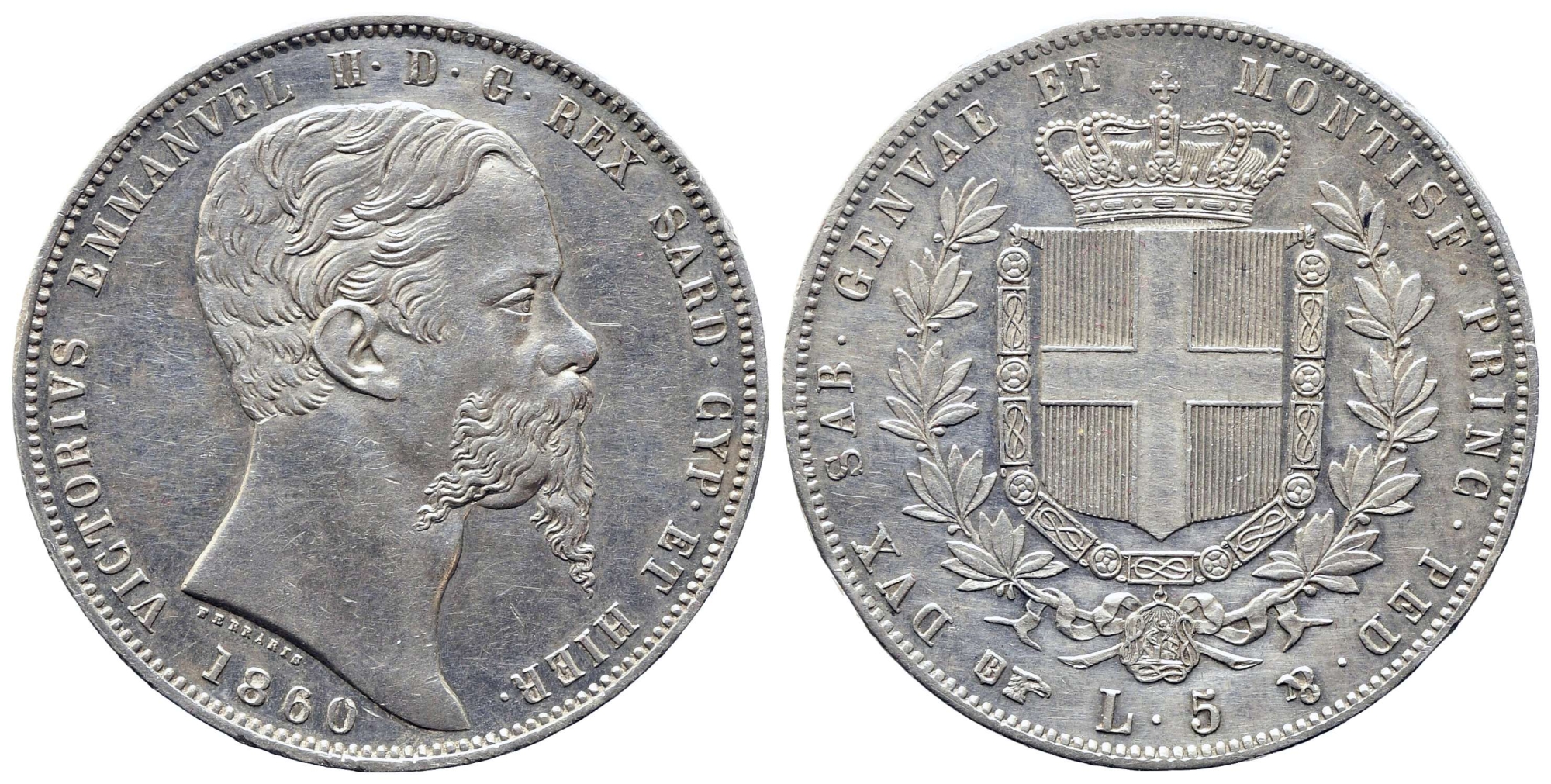 Lot 729 | REGNO DI SARDEGNA. Vittorio Emanuele II (1849-1861). 5 lire 1860. Ag (37mm –...