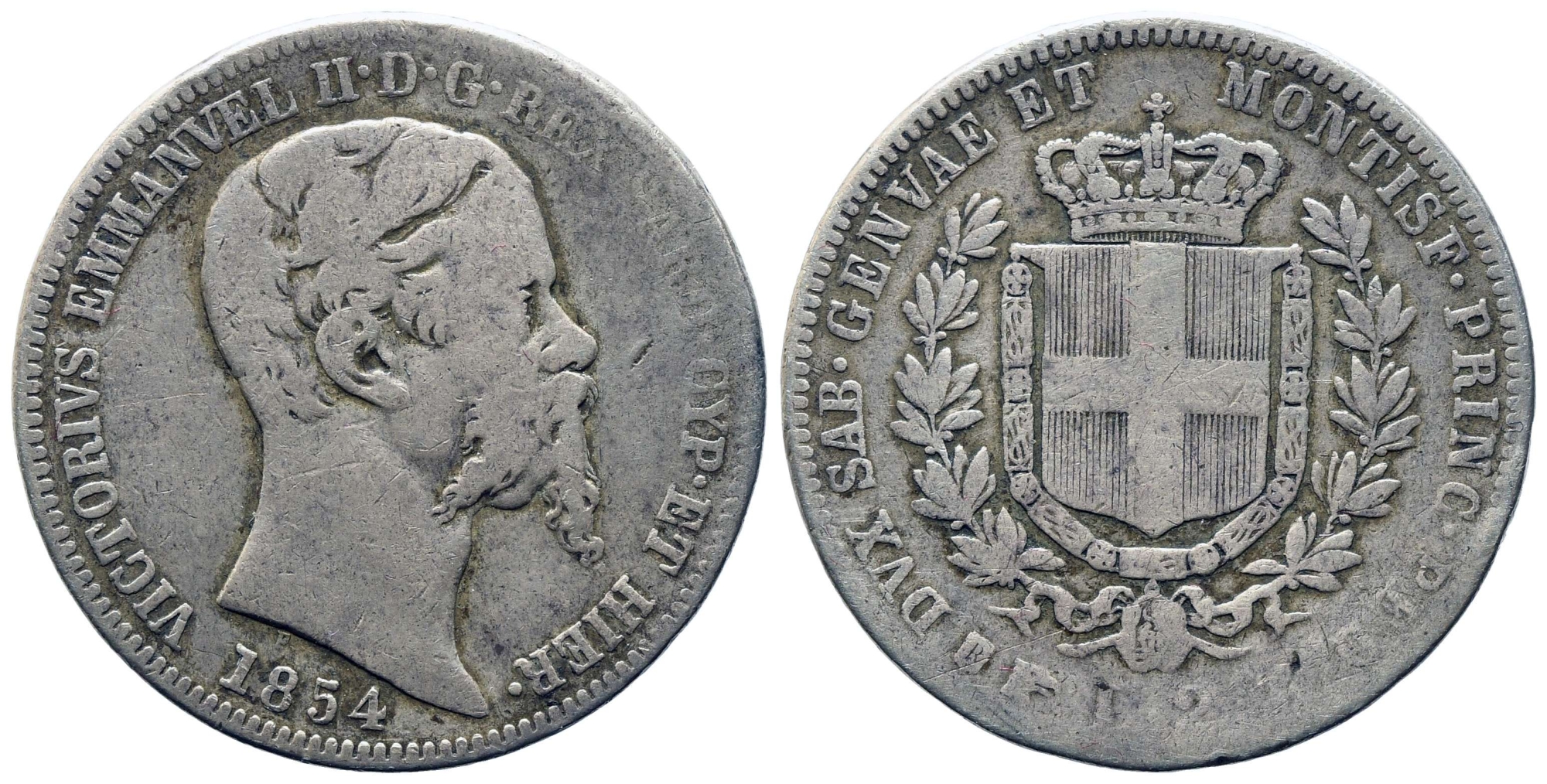REGNO DI SARDEGNA. Vittorio Emanuele II (1849-1861). 2 lire 1854. Torino. Ag. R. MB. Ex asta Varesi 21, lotto 781.