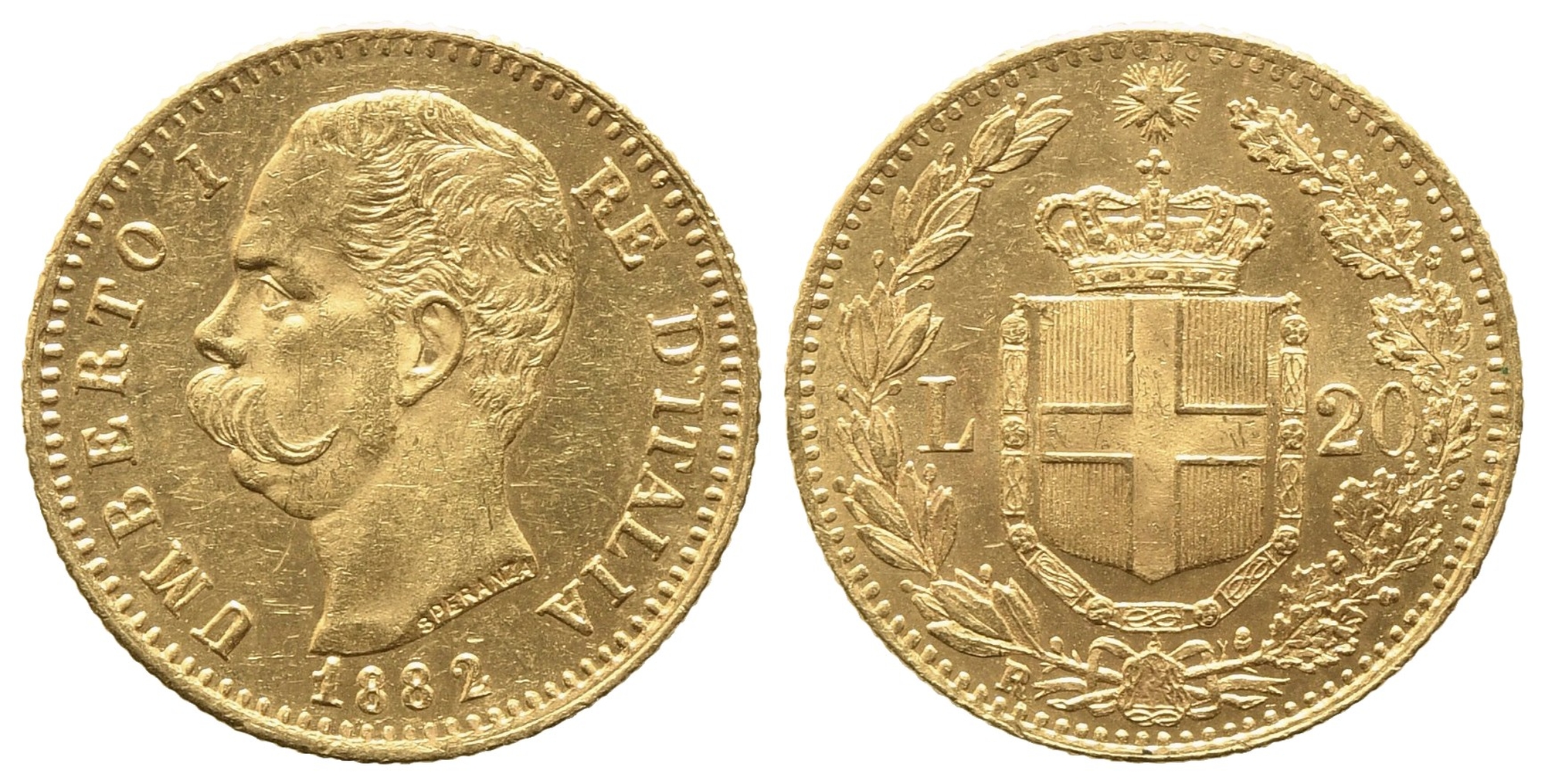 REGNO D'ITALIA. Umberto I (1878-1900). 20 lire 1882. Au (6,45 g). SPL/qFDC