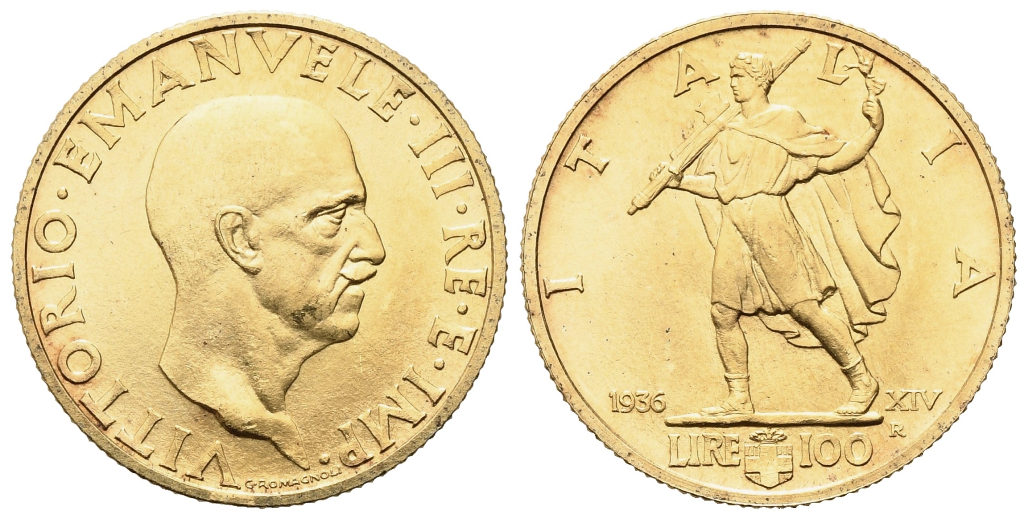 REGNO D'ITALIA. Vittorio Emanuele III (1900-1943). 100 lire 1936 "Impero" I tipo. Au (8,80 g). Gig. 13. RR. Soltanto 812 esemplari coniati. qFDC/FDC