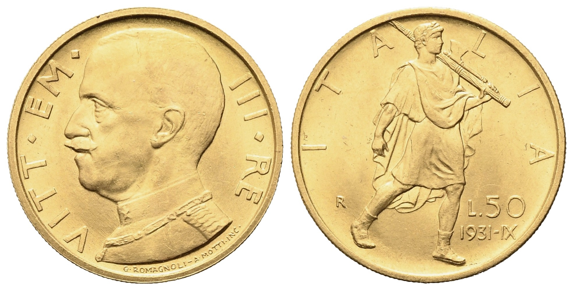 REGNO D'ITALIA. Vittorio Emanuele III (1900-1943). 50 lire 1931 IX. Au (20,5...