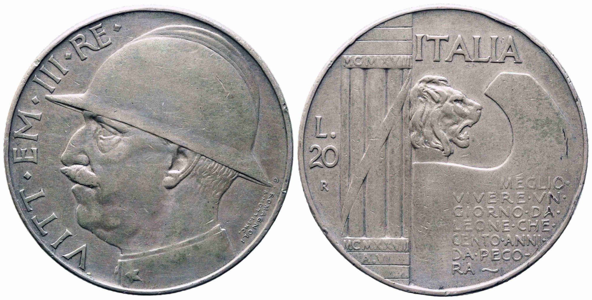 REGNO D'ITALIA. Vittorio Emanuele III (1900-1943). 20 lire 1928 "Elmetto"....