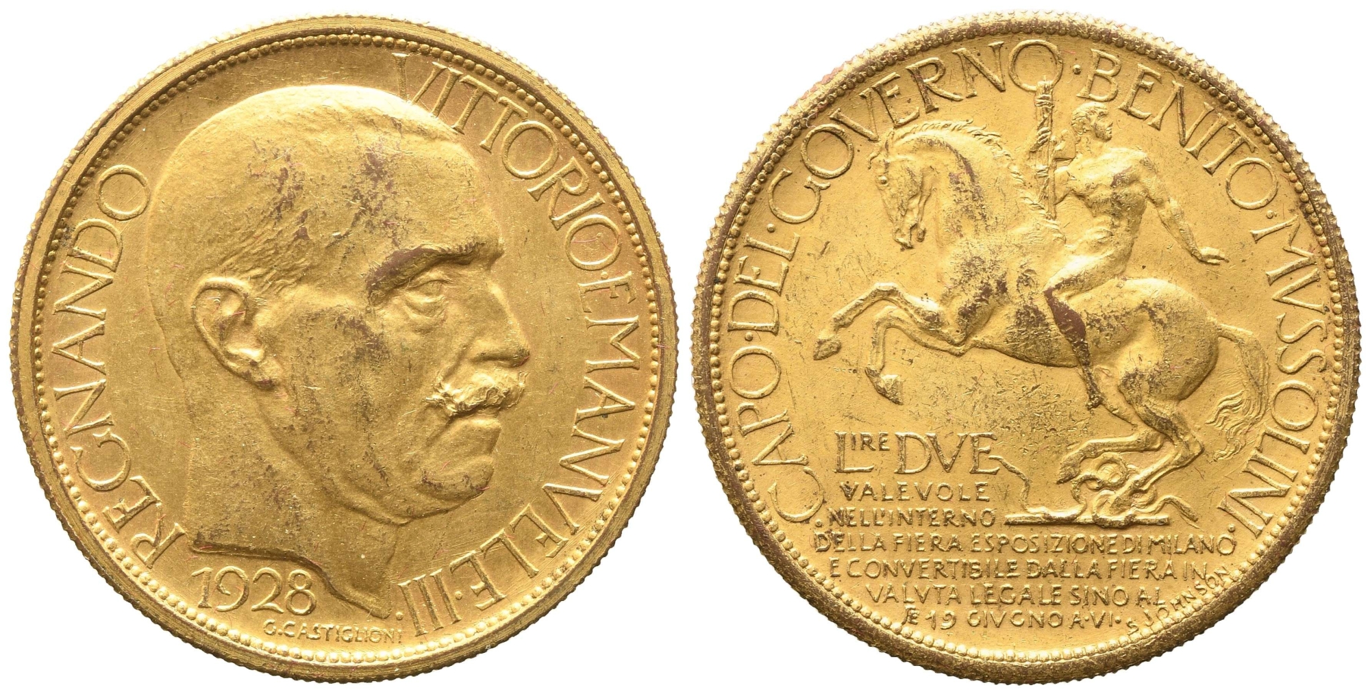 REGNO D'ITALIA. Vittorio Emanuele III (1900-1943). Buono da 2 lire Esposizione di Milano 1928. Cu dorato. SPL.