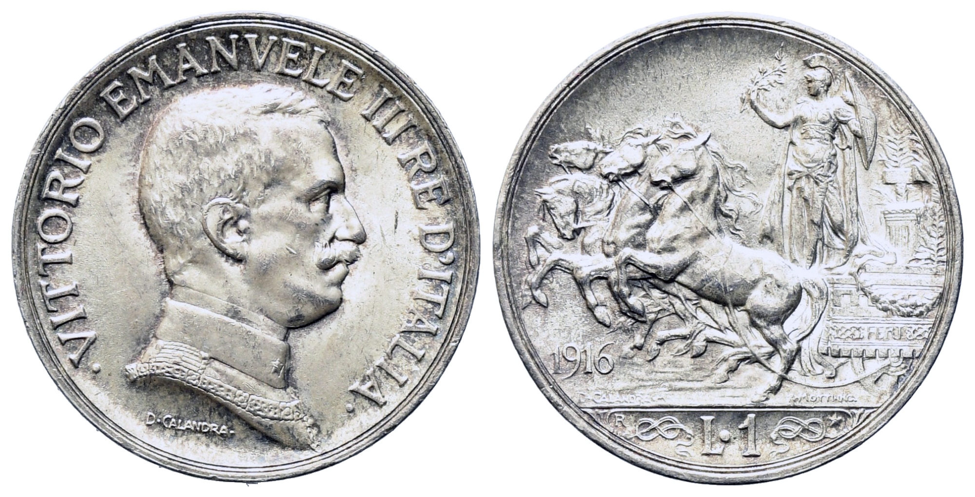 REGNO D'ITALIA. Vittorio Emanuele III (1900-1943). 1 lira 1916 "quadriga...