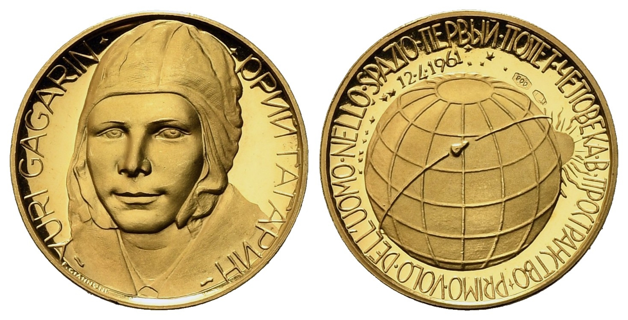 REPUBBLICA ITALIANA. Coniazione celebrativa a cura della "Numismatica Italiana" "Volo dell'uomo nello spazio". Au (7 g). PROOF