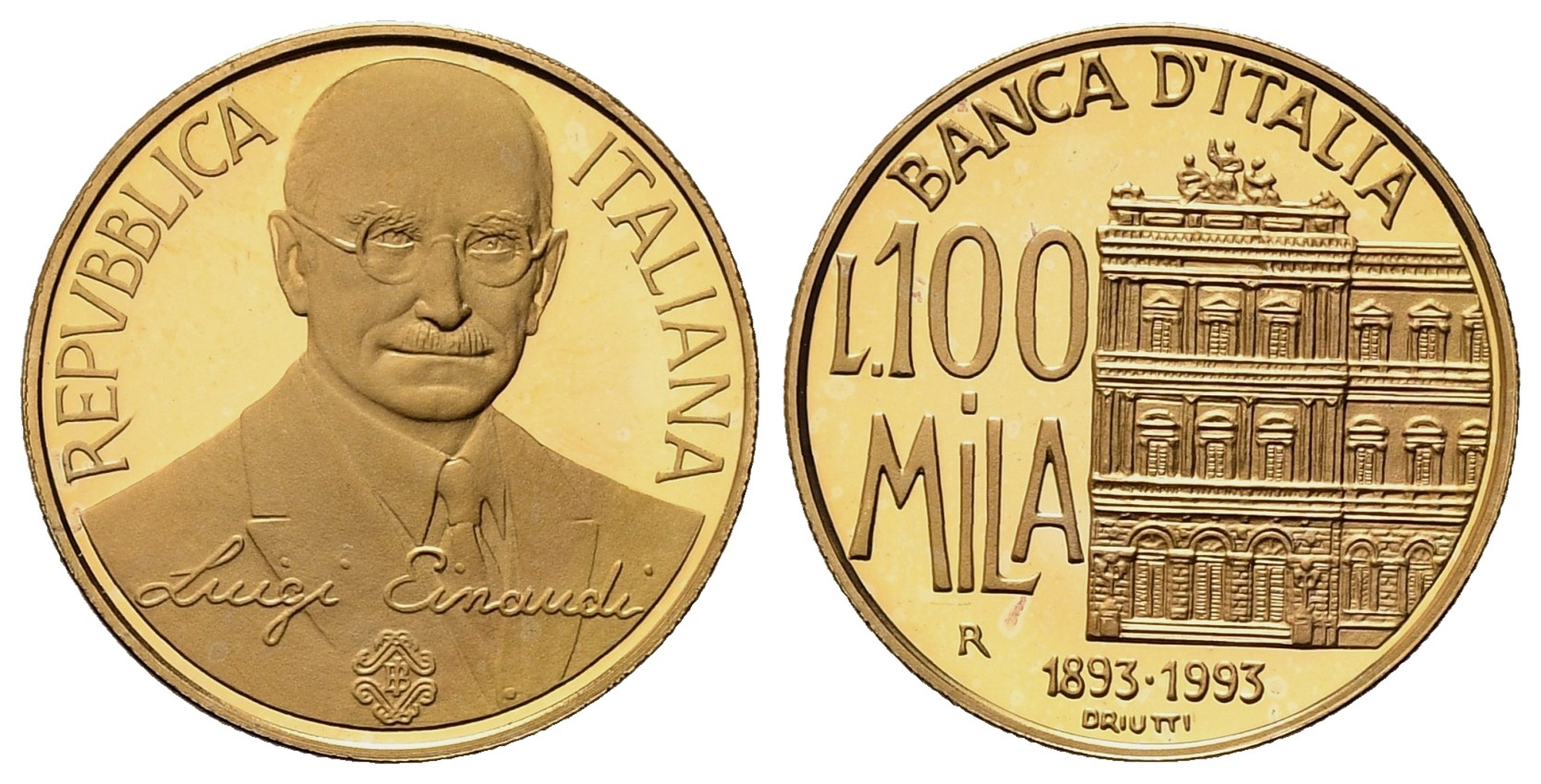 REPUBBLICA ITALIANA. lire 100.000 Coniazione Aurea 1994. Au (15 g). PROOF