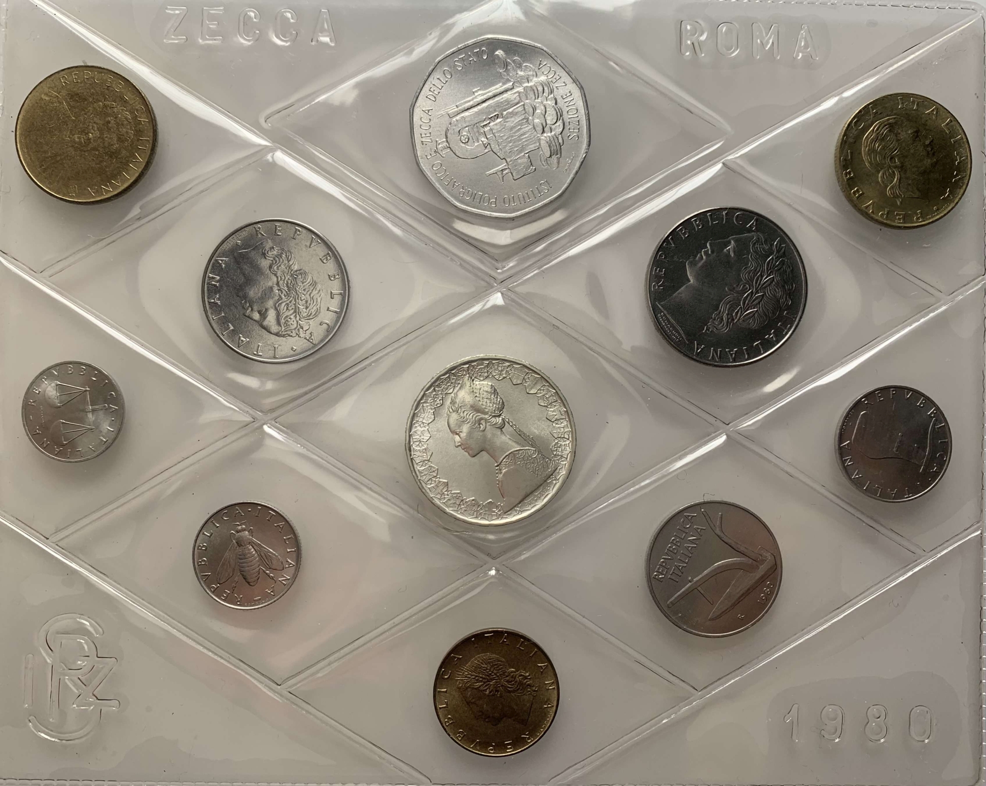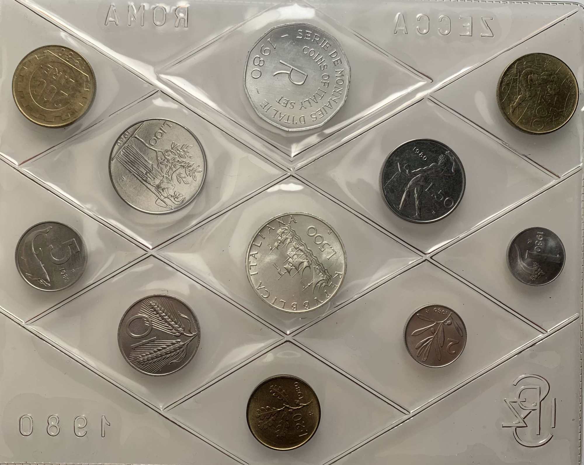 REPUBBLICA ITALIANA. Serie divisionale zecca 1980 "1, 2, 5, 10, 20, 50, 100,...