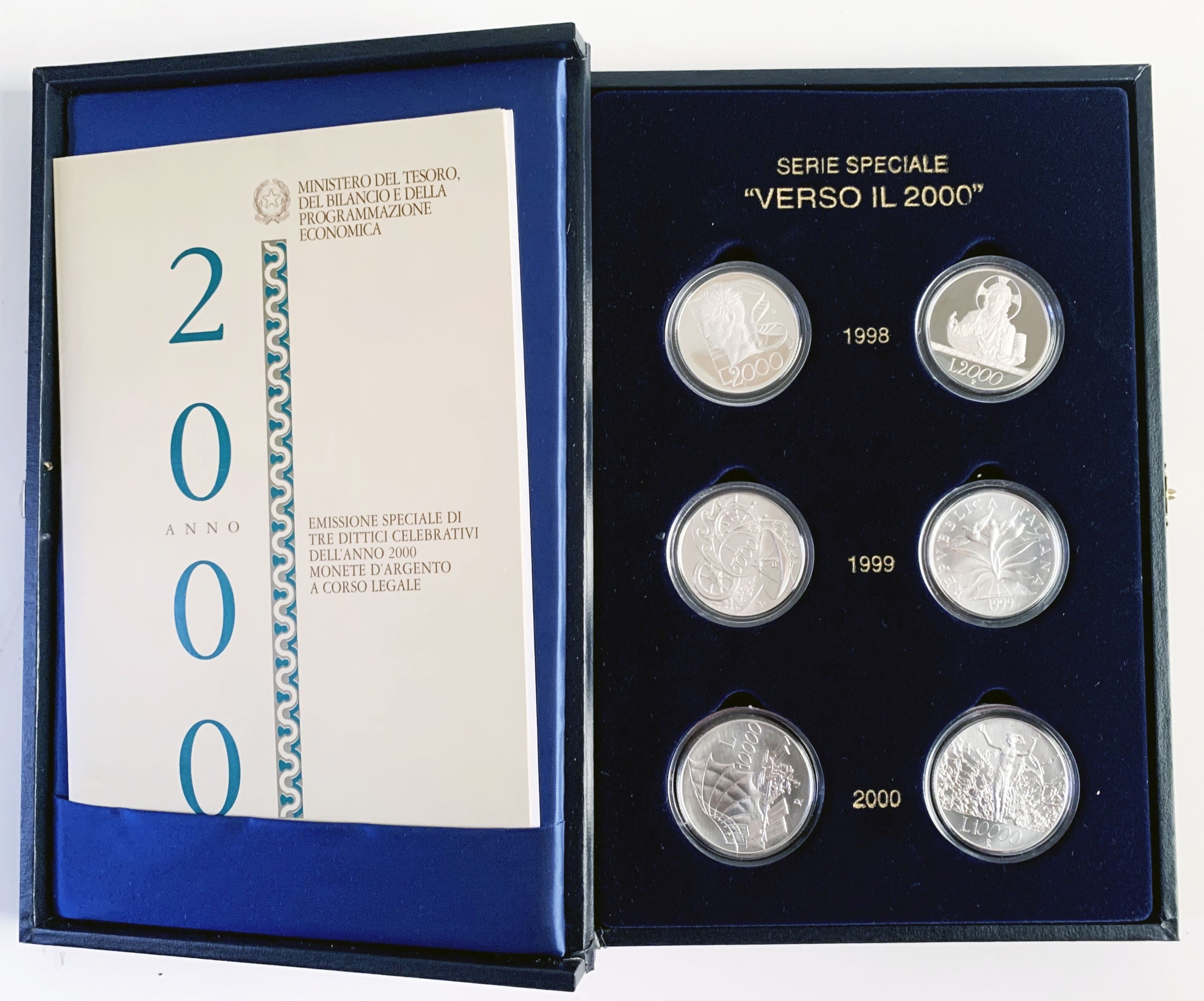 REPUBBLICA ITALIANA. Serie speciale della Zecca in Ag. Verso il 2000, 6...