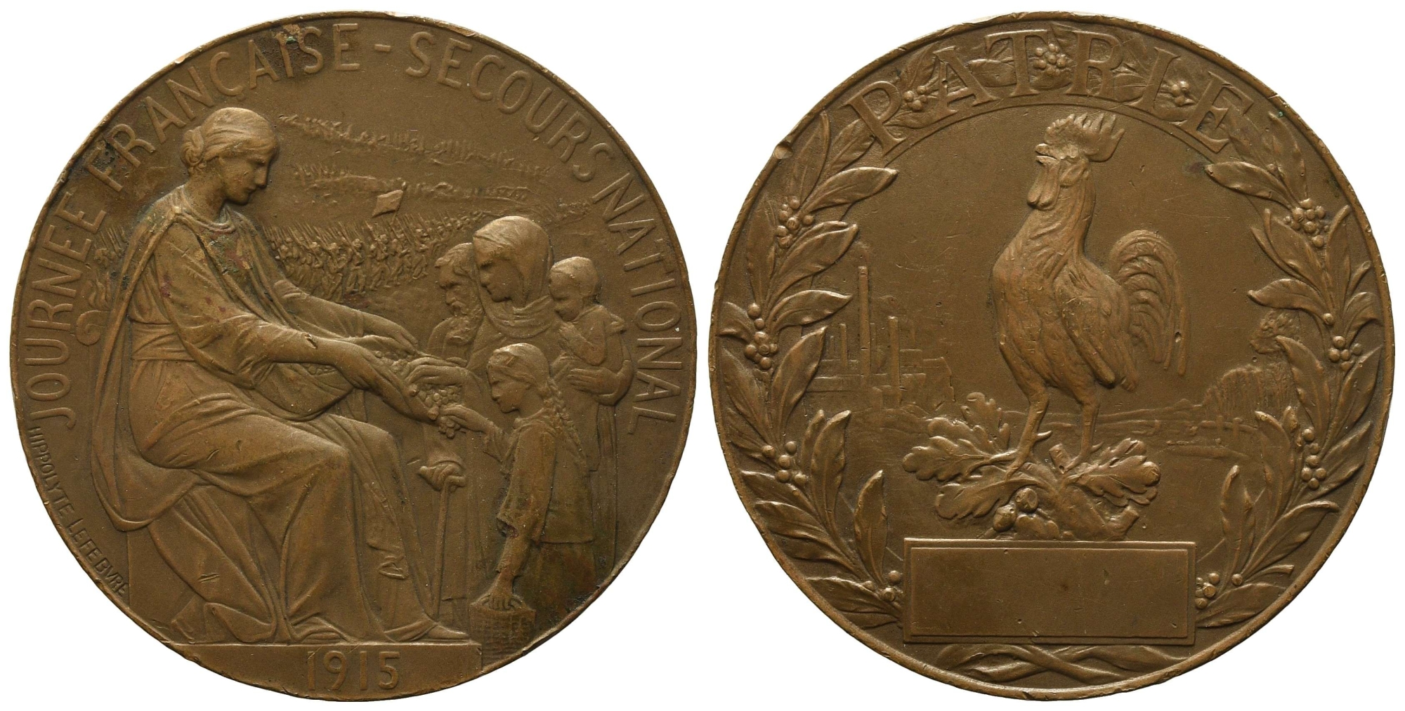 FRANCIA. Terza Repubblica (1870-1940). Medaglia Journée française secours national 1915. Ae (49,5 mm). qSPL, colpetti