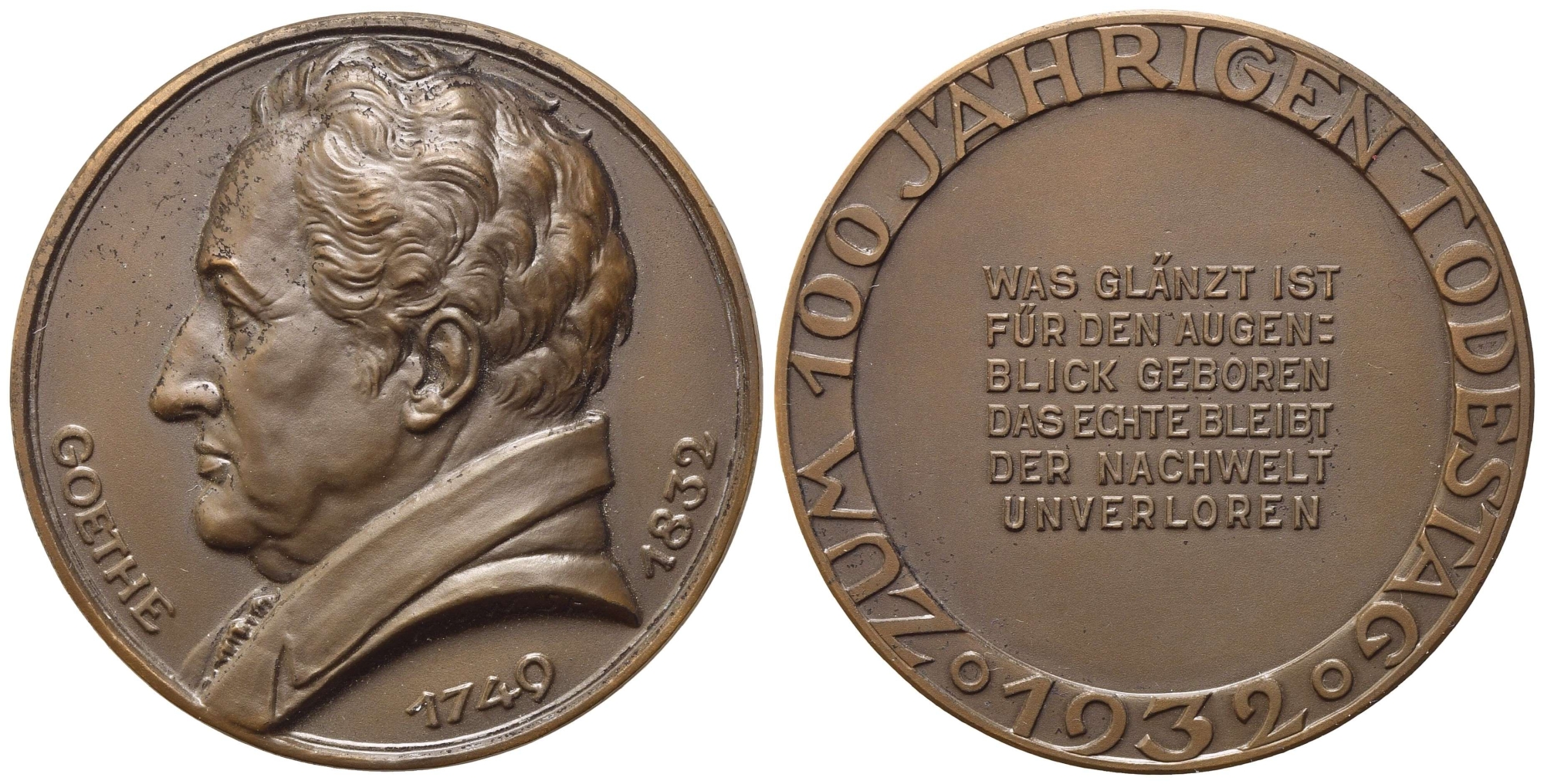 GERMANIA. Medaglia per il centenario della morte di Goethe (1832-1932). Ae (55 mm). R. BB/SPL