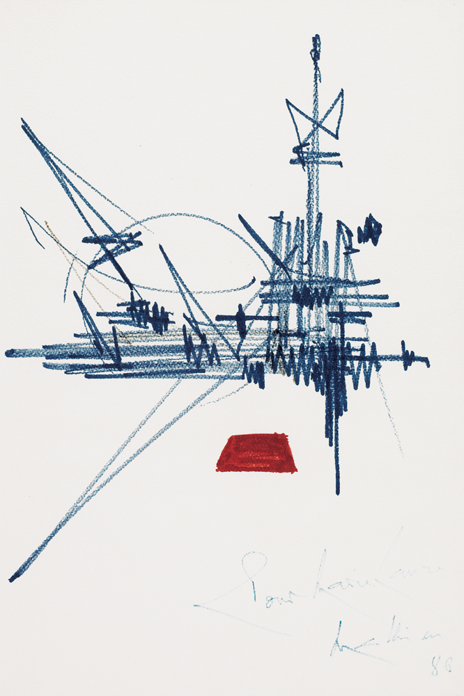 GEORGES MATHIEU Boulogne sur Mer 1921 - Boulogne-Bilancourt 12/06/2012 Senza titolo, (1971/72) pastello e gouache su carta cm. 56,3x37,3; firma e dedica dell'artista ad personam datata 1986 in basso a destra, esposto e pubblicato sul catalogo della mostra "Mathieu peintures, gouaches et collages" tenutasi dal 23 maggio al 15 giugno 1972 a Bayron, al numero 18, dichiarazione d'autenticità della Galerie Protee (Paris) su foto.