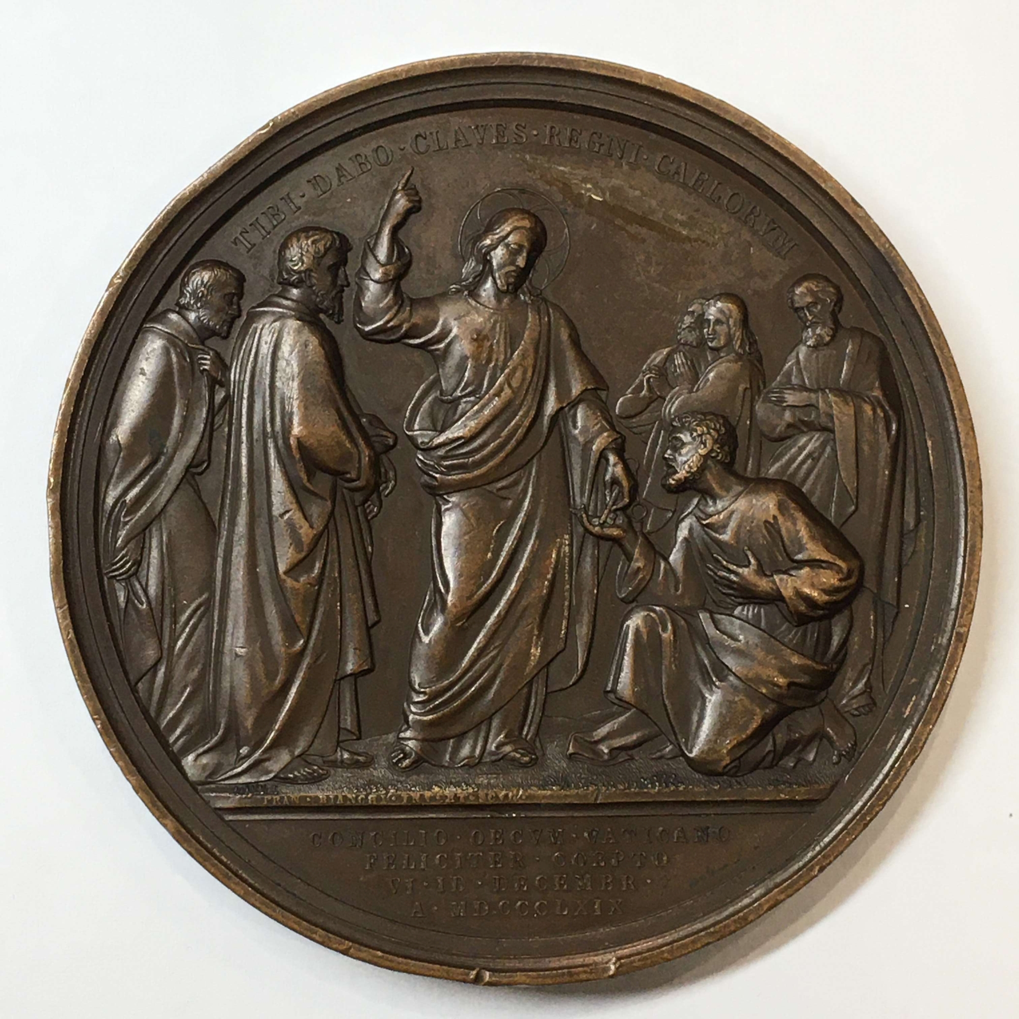CITTA' DEL VATICANO. Stato Pontificio. Pio IX (1846-1878). Medaglia 1869. Anno XXIV. Concilio Ecumenico. Gesù consegna le chiavi. Opus Bianchi. Ae (174 g - 74 mm). Bartolotti XXIV-8. BB