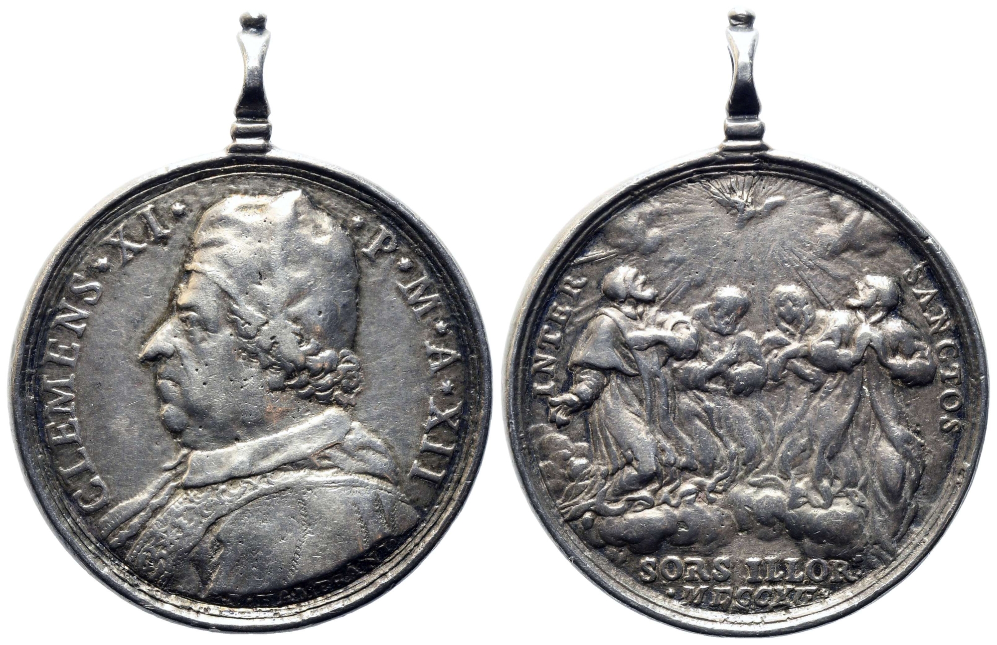 ROMA. Stato Pontificio. Clemente XI (1700-1721). Medaglia 1712, anno XII. Per la canonizzazione del 1712. Opus Ermenegildo Hamerani. Ag. R. MB. Appiccagnolo settecentesco.