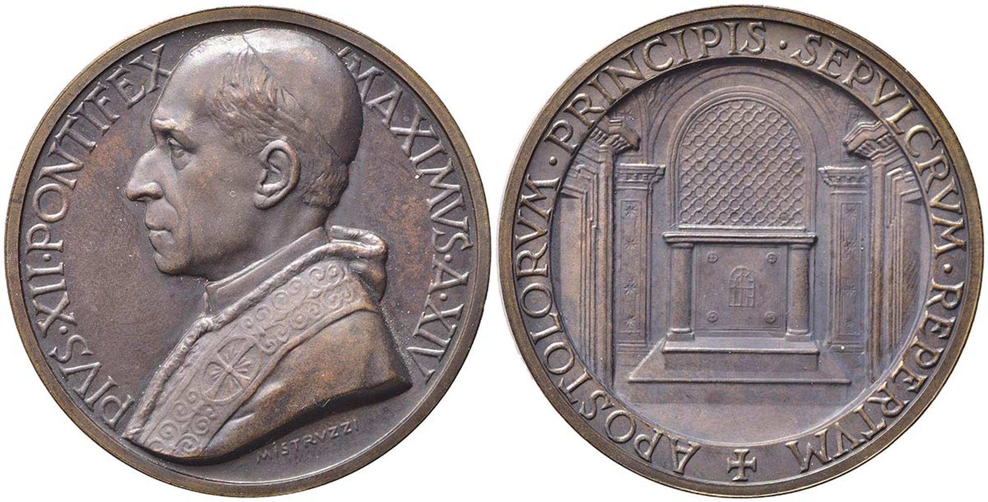 CITTA' DEL VATICANO. Pio XII (1939-1958). Medaglia Anno XIV "Sepolcro di San Pietro". Opus Mistruzzi. Ae (33,17 g). FDC