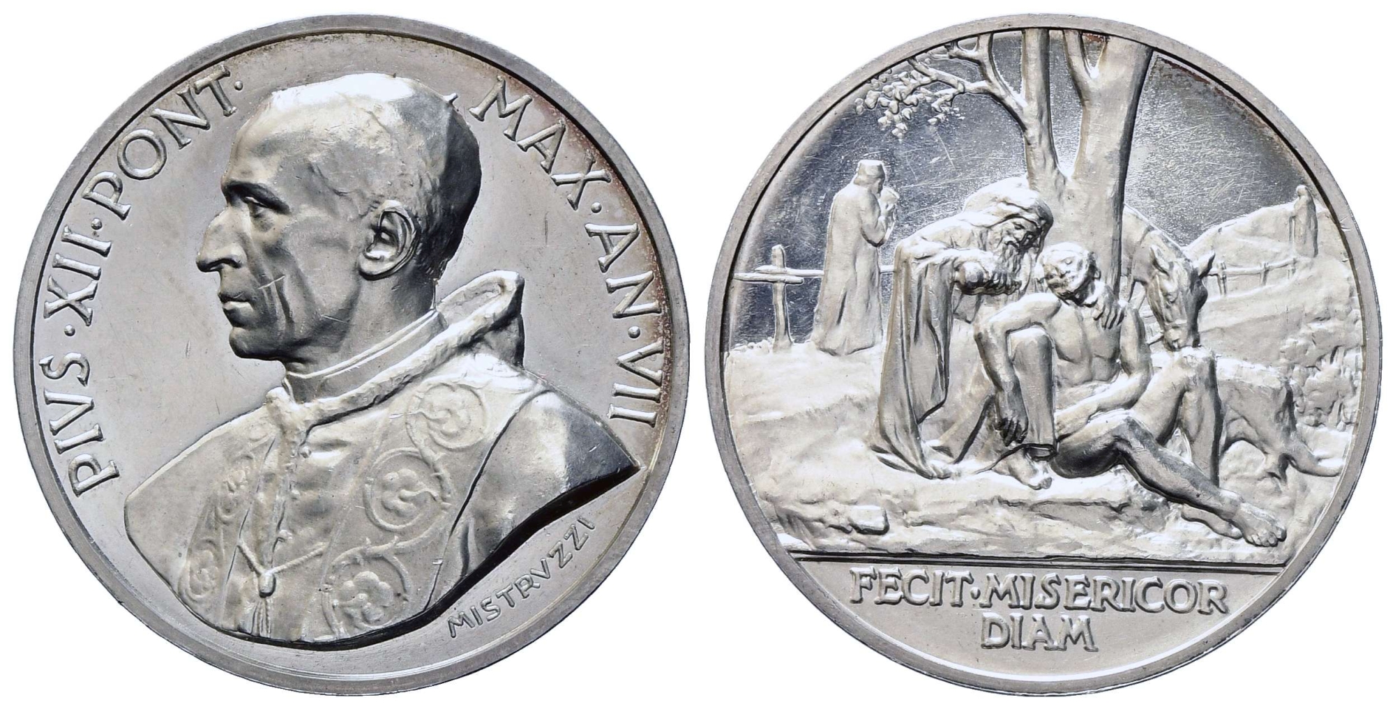 CITTA' DEL VATICANO. Pio XII (1939-1958). Medaglia in argento (43,98 mm – 39,47 g). Anno VII. FDC