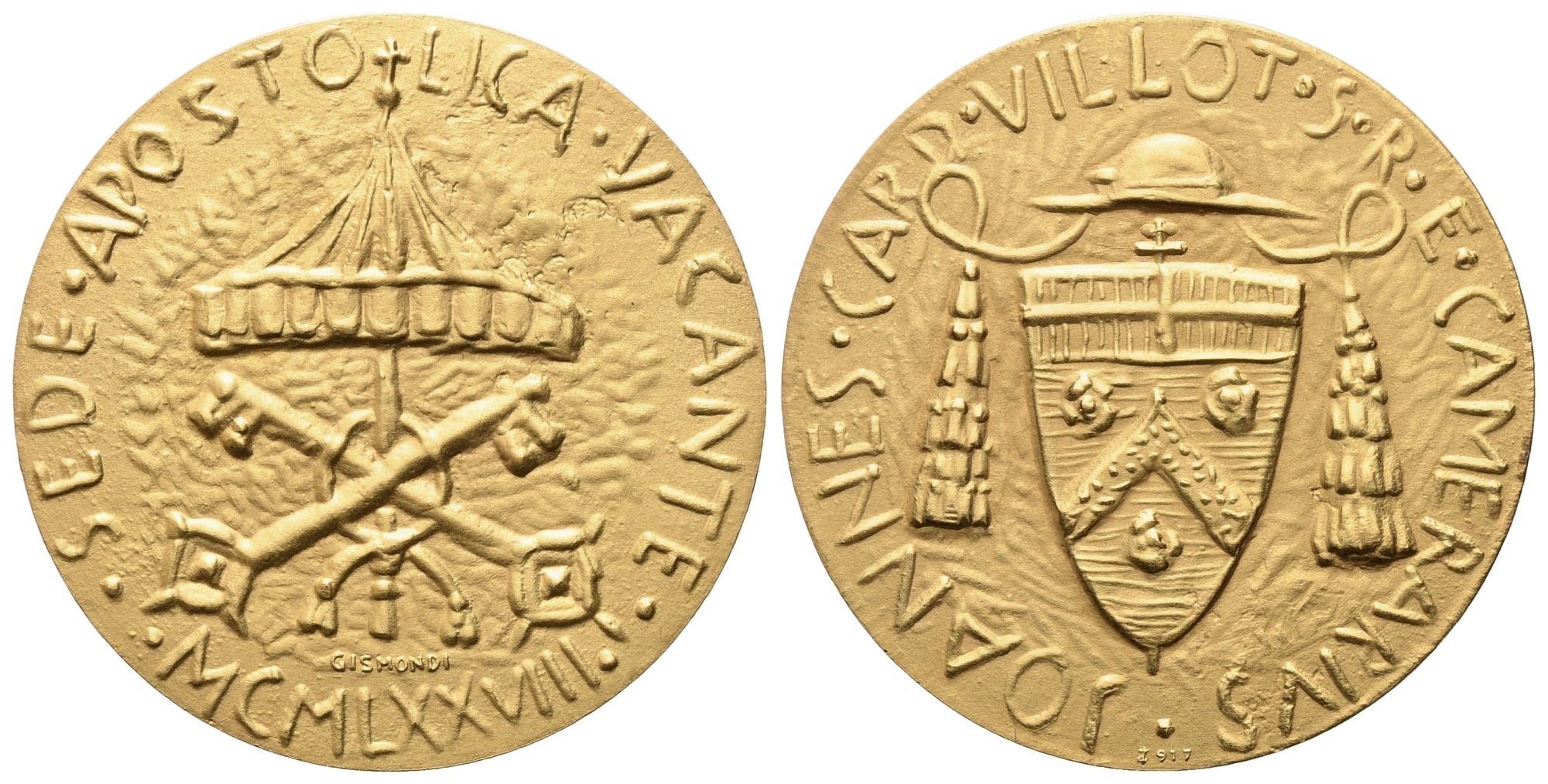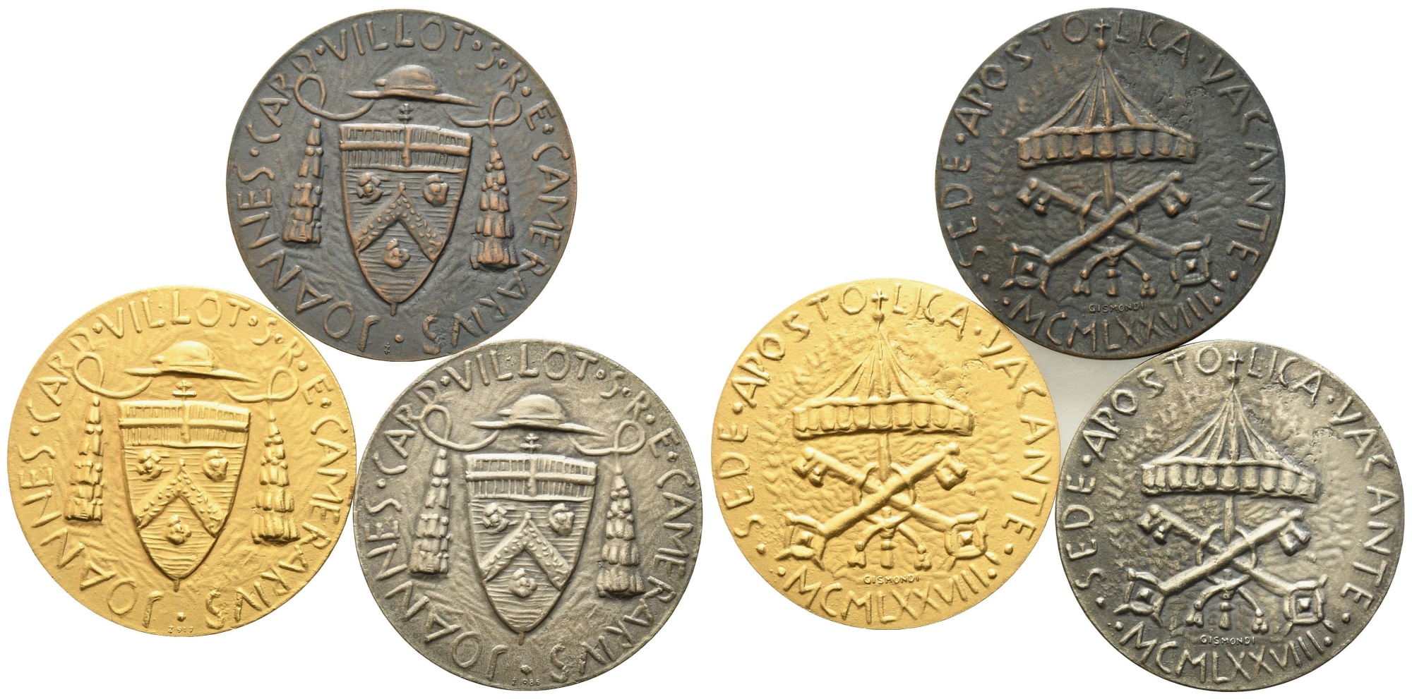 CITTA' DEL VATICANO. SEDE VACANTE. Trittico di medaglie 1978 Cardinale Villot (Au 45,03 g; Ag 32,59 g; Ae 28,84 g). FDC