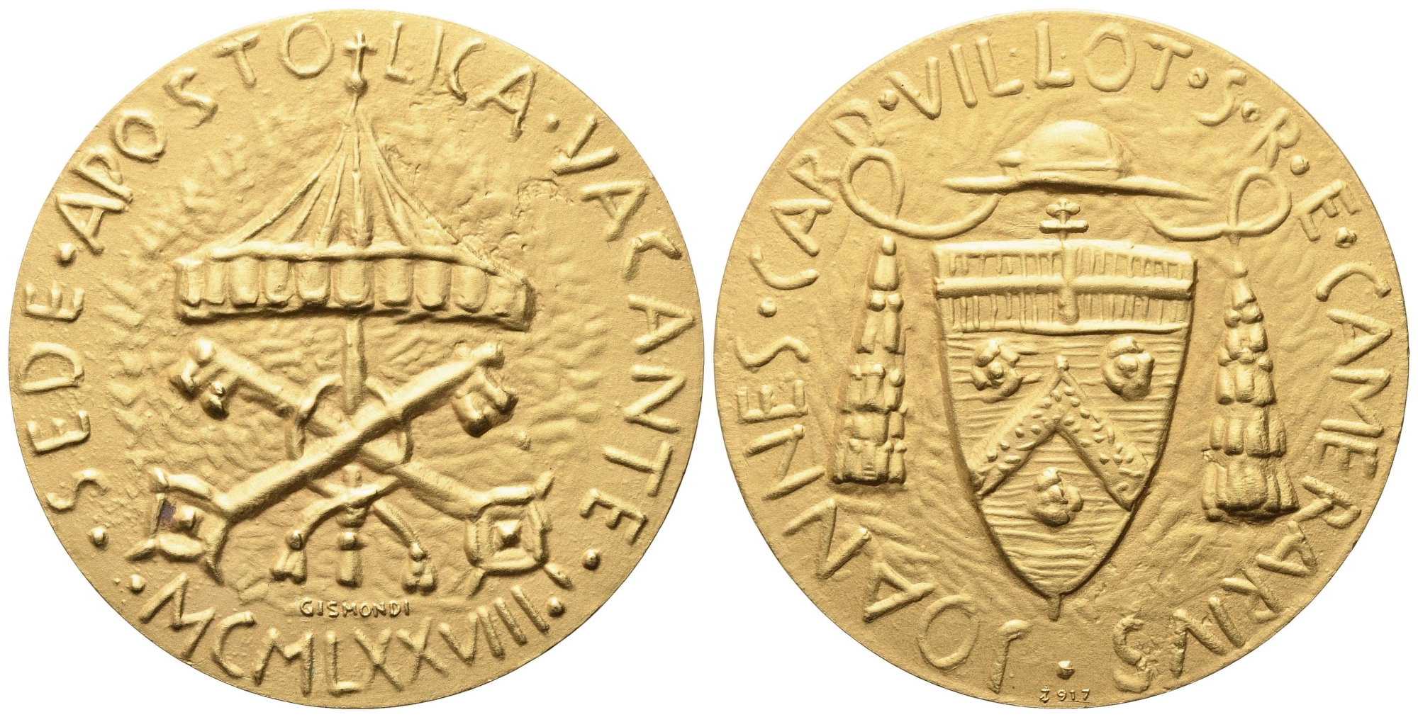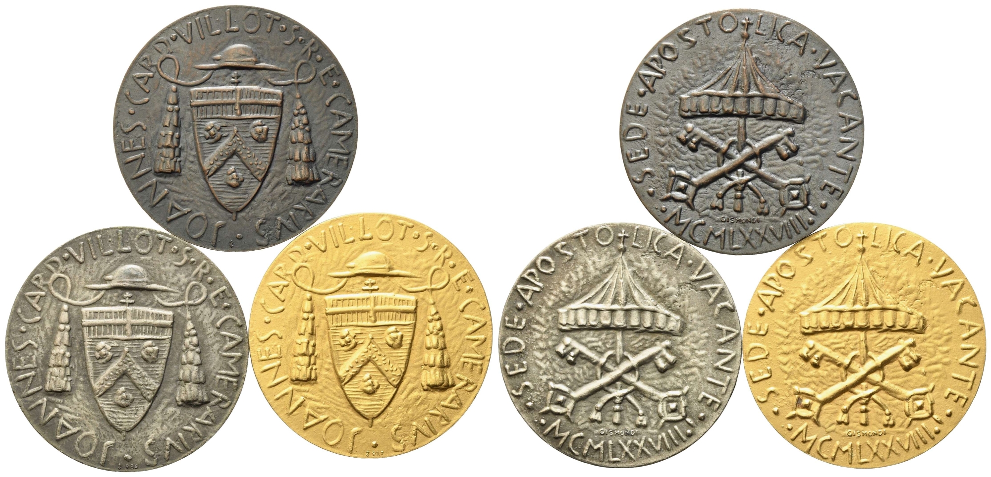 CITTA' DEL VATICANO. SEDE VACANTE. Trittico di medaglie 1978 Cardinale Villot (Au 45,30 g; Ag 32,23 g; Ae 28,52 g). FDC