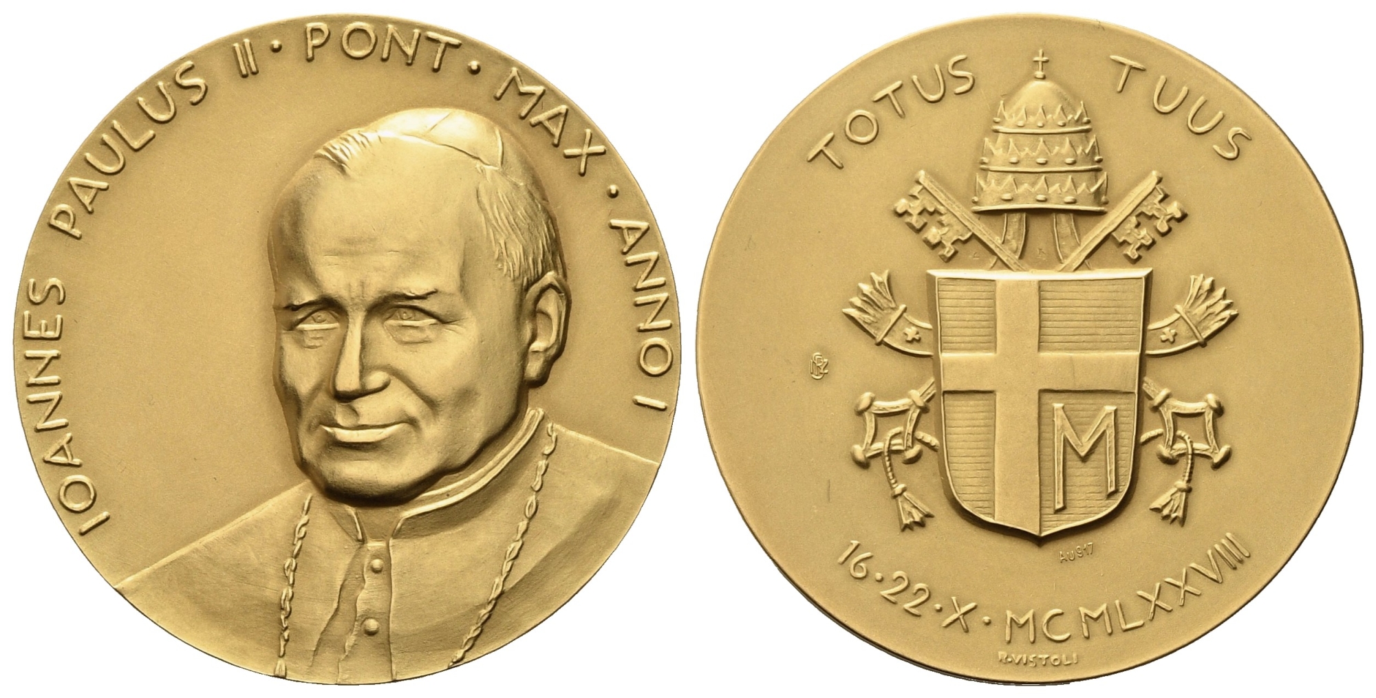CITTA' DEL VATICANO. Giovanni Paolo II (1978-2005). Trittico di medaglie Anno I 1978 (Au 64,78 g; Ag 42,23 g; Ae 36,31 g). FDC