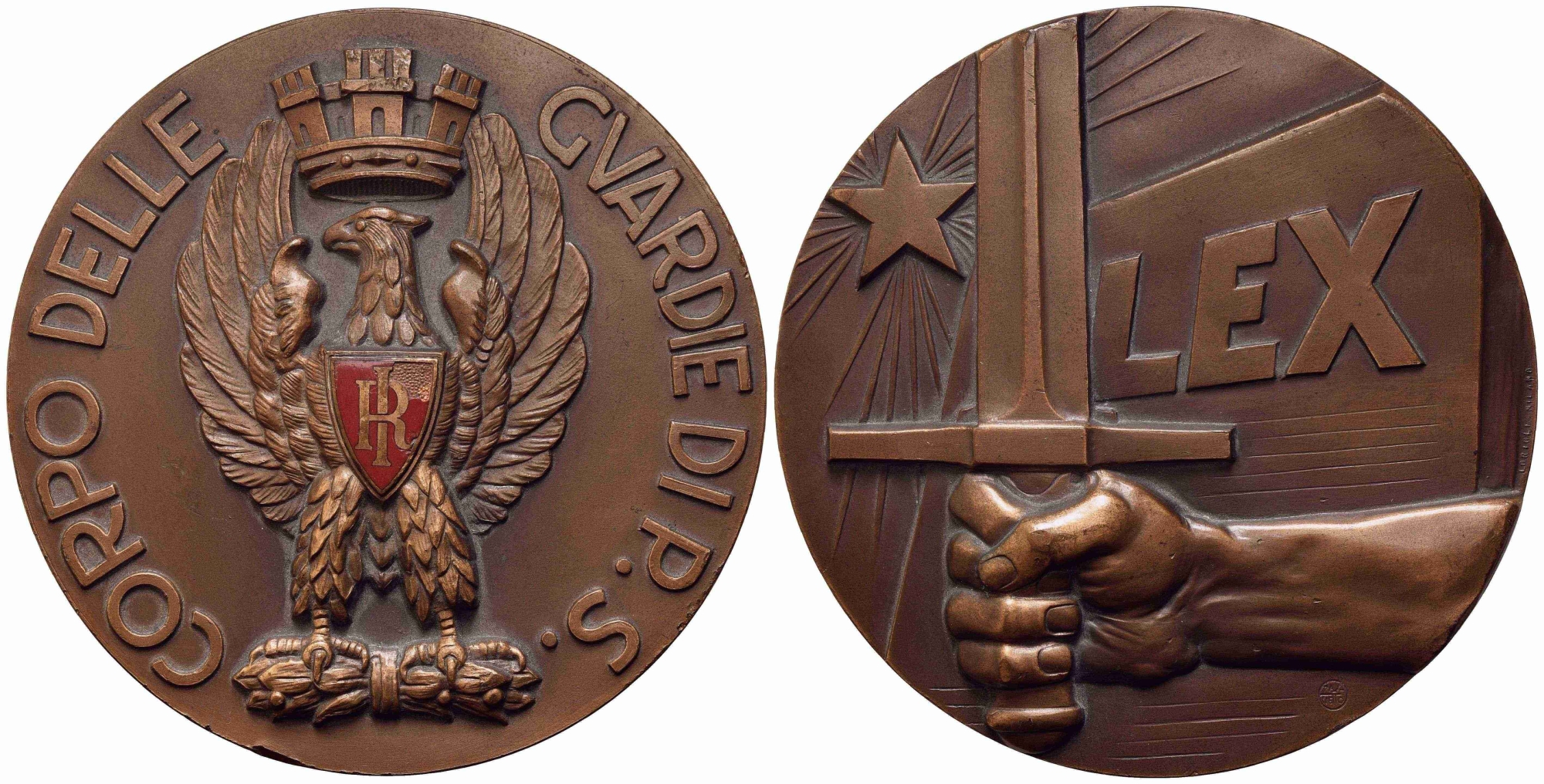 ITALIA. Polizia di Stato. Medaglia istituita nel 1949, per il Corpo delle Guardie della Polizia di Stato. Minima mancanza di smalto al D/. Ae (100 mm). R. SPL+