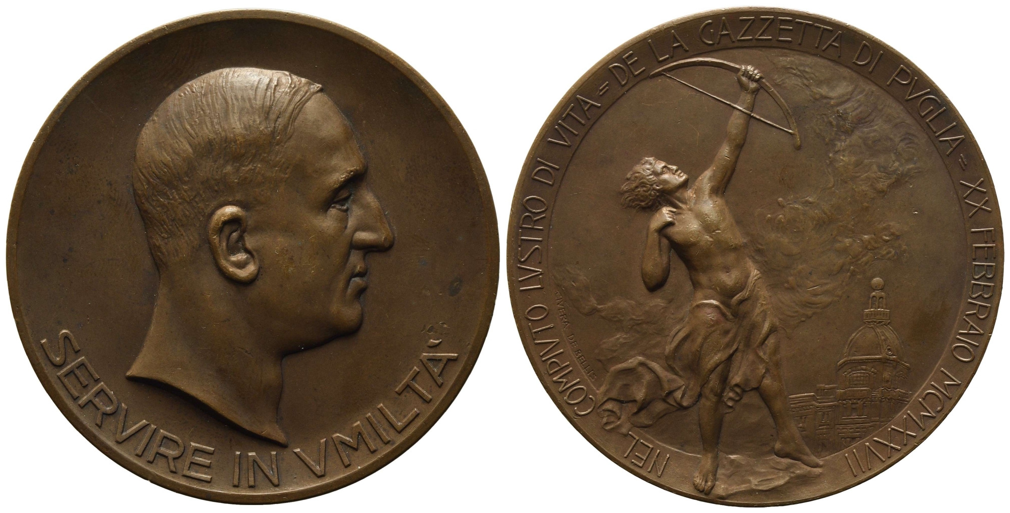 ITALIA. Puglia. Medaglia 5 anni della Gazzetta di Puglia del 1927. Ae (60...