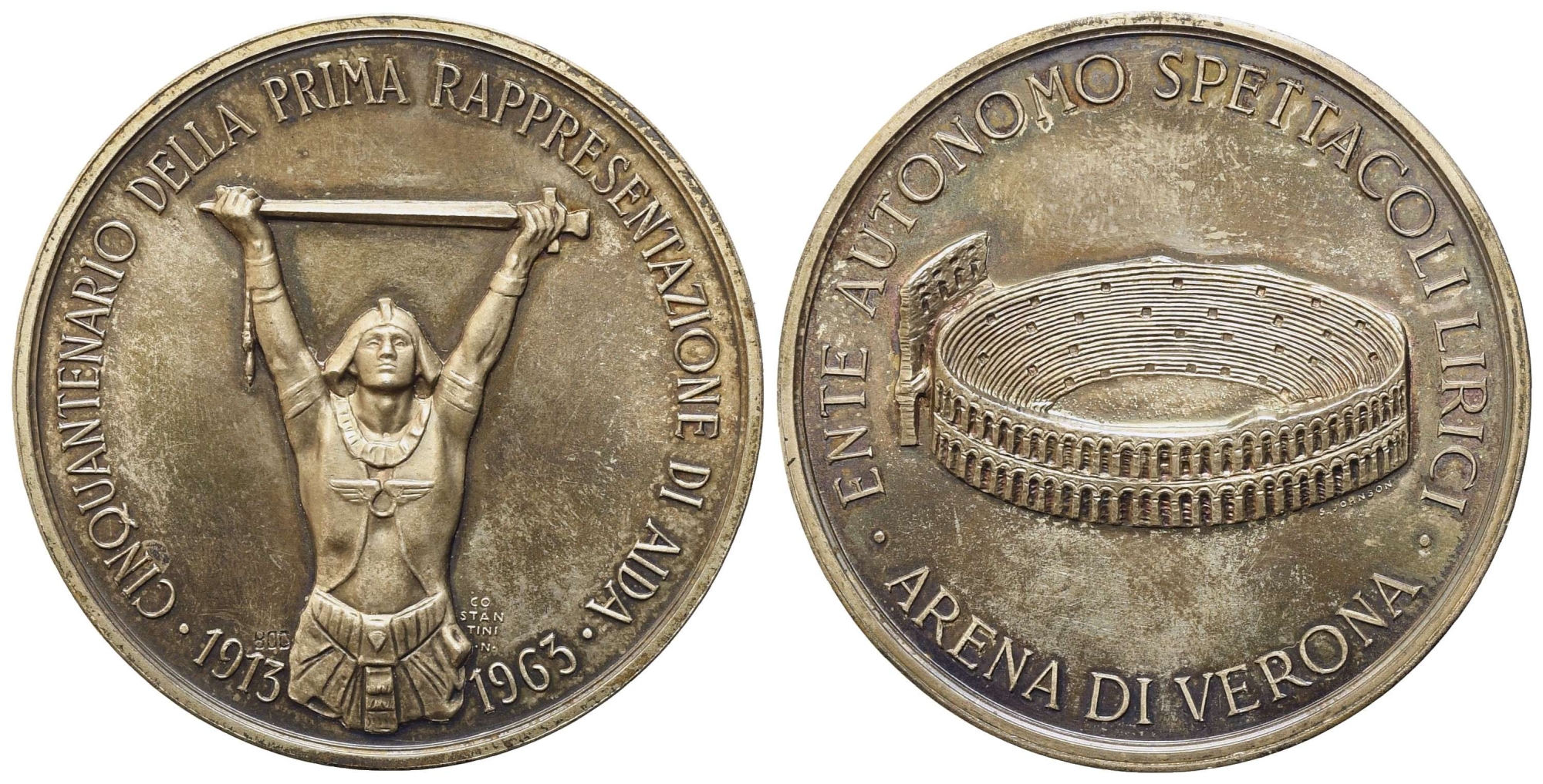ITALIA. Verona. Medaglia per il cinquantenario della rappresentazione dell'Aida nell'arena di Verona (1913-1963). Ag (45mm – 35,5 g). R. BB+ .