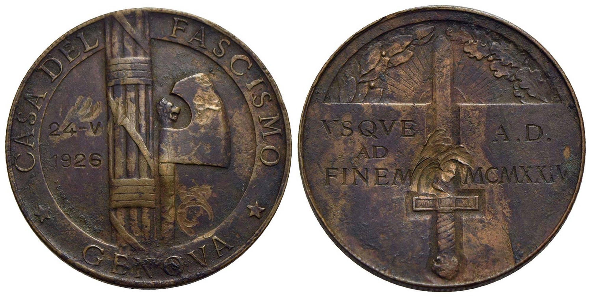 REGNO D'ITALIA - FASCISTE. Medaglia 1926 Casa del Fascismo Genova. Fascio nel...