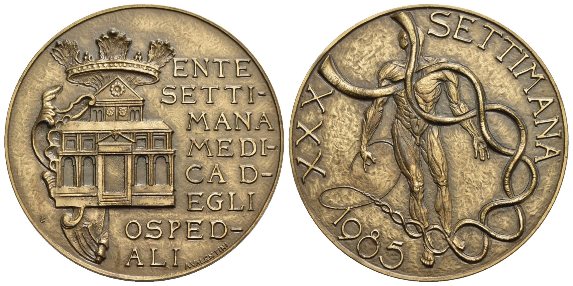 VARIE. Medaglia. MEDICINA 1985 Ente settimana medica degli ospedali. R/ XXX Settimana. Opus Valentini. Ae (50 mm).SPL/FDC