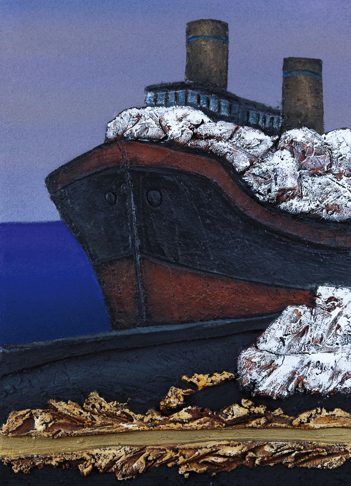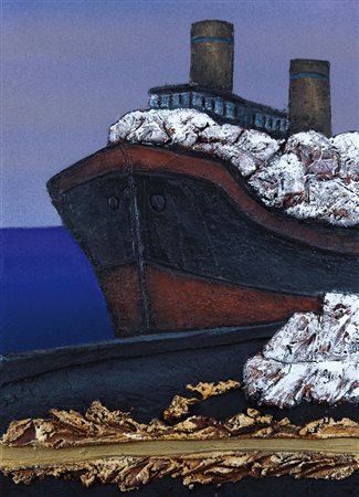 MARIO PASCHETTA Milano 27/04/1949 Carrara, il porto, marmi in carico, 1999 malte e terre naturali su tela cm. 70x50, firma, titolo e anno al retro, dichiarazione d'autenticità e archivio dell'artista su foto, pubblicato sul catalogo della mostra "Mario Paschetta, la mia Toscana" a cura di Lucio Barbera, tenutasi dal 31 luglio al 20 settembre 1999 presso la Torre Normanna, Castello di Altomonte, Festival Mediterraneo dei Due Mari e dal 28 agosto al 16 settembre 1999 presso la Galleria d'Arte Cinquantasei (Desenzano del Garda), pagina 121.