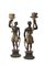 Coppia di mori reggitorcia in legno intagliato ed ebanizzato con portacandele i