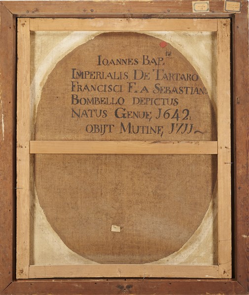 Inscribed on the back "Ioannes Bap./ Imperialis De Tartaro/ Francisci F. a Sebastiano/ Bombello depictus/ Natus Genue 1642/ obiit mutine 1711"