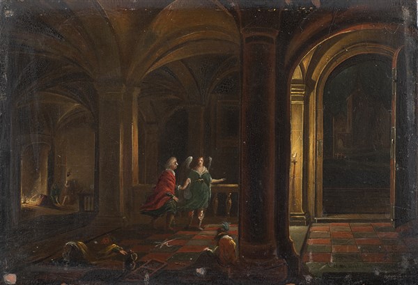 Seguace di Hendrick van Steenwijck II La liberazione di San Pietro Olio su r