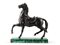 Cavallo in bronzo con coda svitabile poggiante su base rettangolare lastronata in malachite (cm tot 30x33x10) (mancanze)