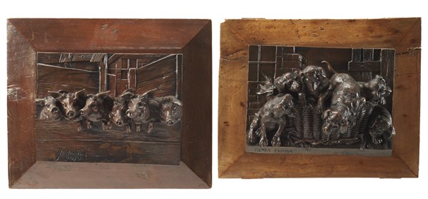 Antonio Pandiani (Milano 1838-1928) Musici e Merry Family Due rilievi in bronzo