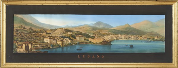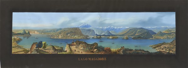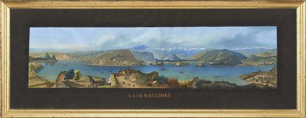 Anonymous artist of the 19th century. Pair of mixed media on paper depicting Lake of Lugano and Maggiore lake (cm 86x22) Framed (defects)