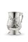 Mug in argento con corpo piriforme sbalzato a motivi floreali e volute formanti