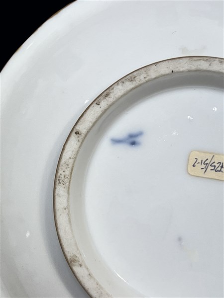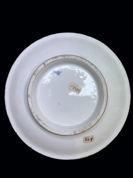 Manifattura francese del secolo XIX. Tazza con piatto in porcellana decorata in