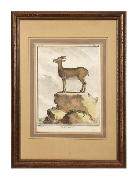 Lotto composto da sei incisioni colorate su carta dell'inizio del XIX secolo raffiguranti animali